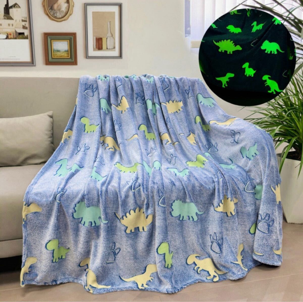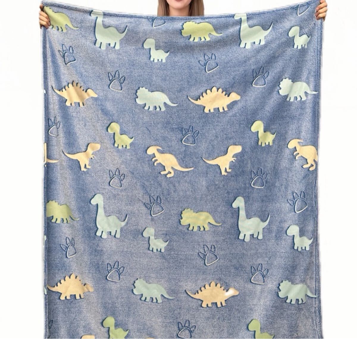 光る恐竜たち☆ふわふわかっこいい、可愛い蓄光ブランケットです。