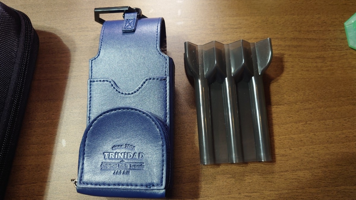 左の紺色のケースはtrinidadの現行品で買って2回ほど使用しましたが2セット持ち運びたくなり不要となりました。まだ皮が硬いです。