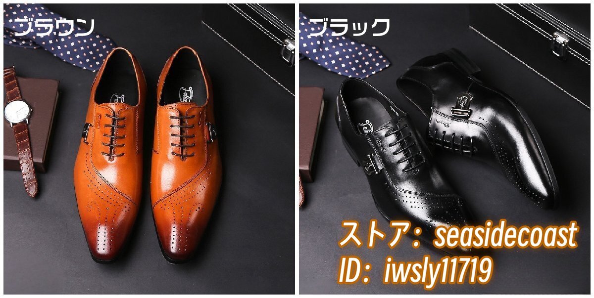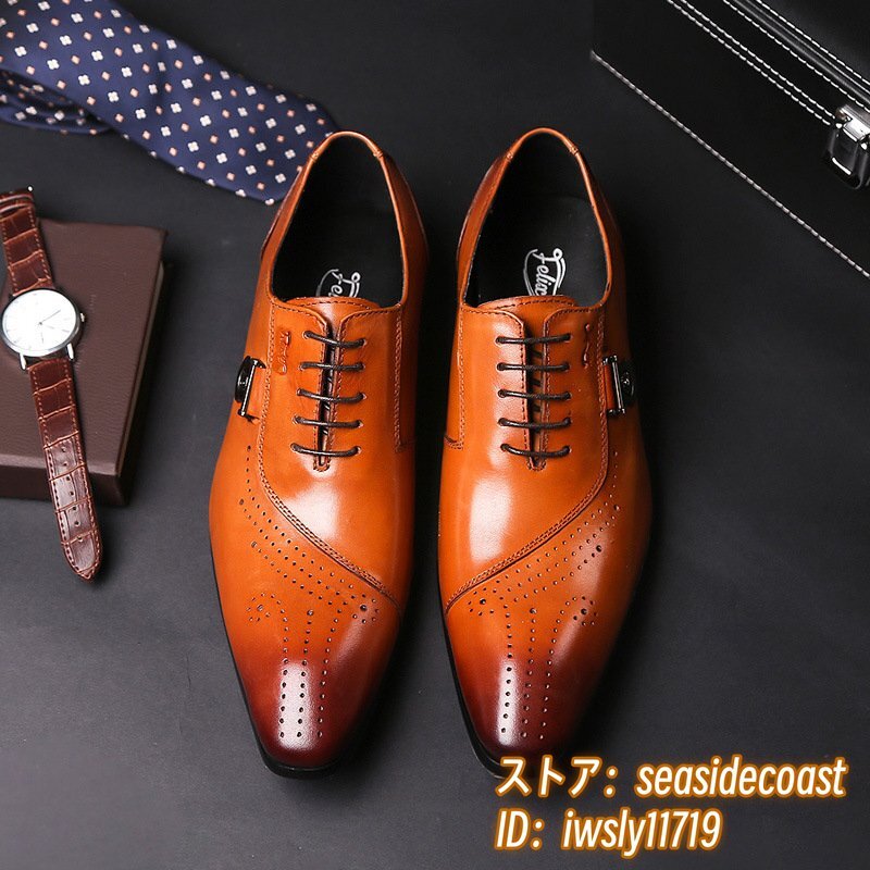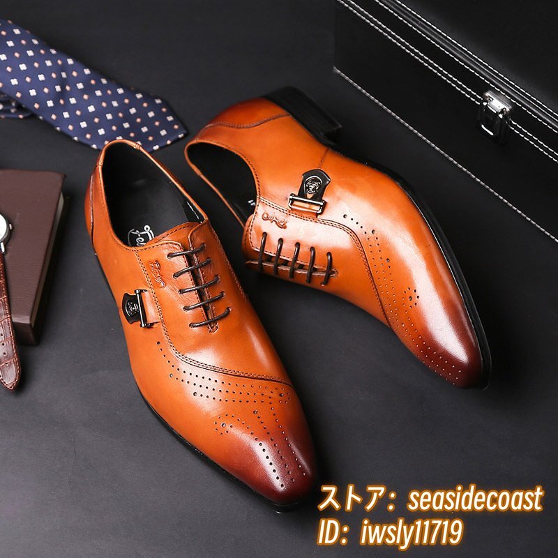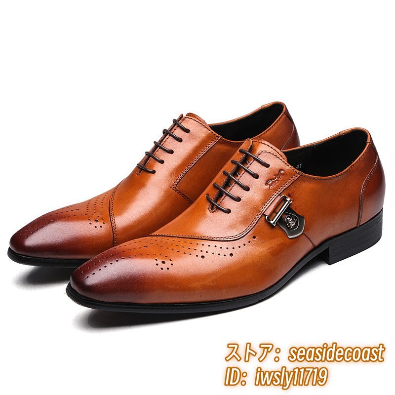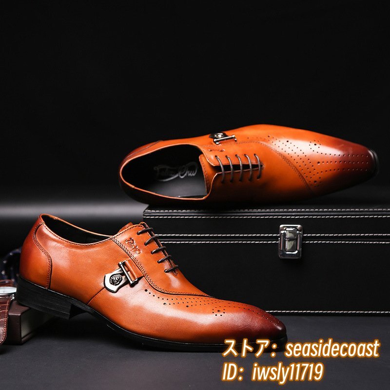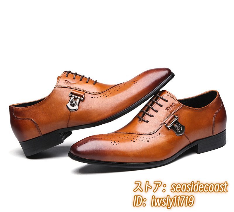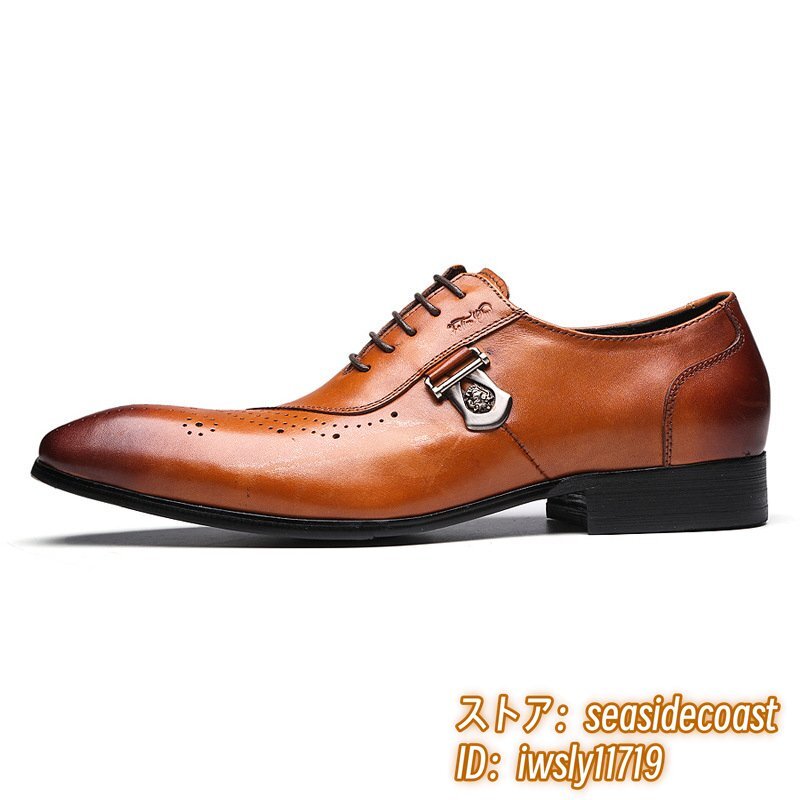 最高級★定価10万 メンズ ビジネスシューズ 本革 職人手作り 彫り レザーシューズ 紳士靴 革靴 ブローグ 牛革 超希少 新品 ブラウン 27.5cm
