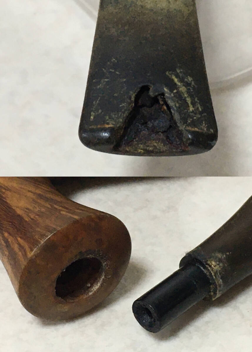 * 商品説明 * ヒビ割れ・使用痕・傷が見受けられます。マウスピースに破損が見受けられます。 サイズ: ボウル内径 2×2.3cm ボウル外径 4×4.8cm ボウル高さ 5.6cm 全長 15.3cm サイズにつきましては若干の誤差があるものとお考えください。 レターパックプラス 全国一律600円です。追跡可能ですが、紛失・破損補償はありません。 宅急便での配送可能です。お気軽にご相談ください。 | ||||||||