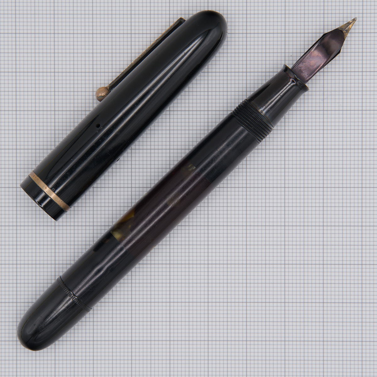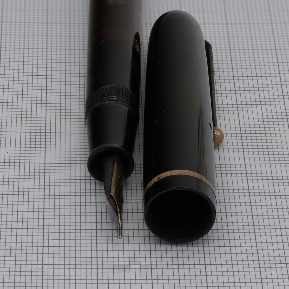 極希少品 パイロット セルロイド+エボナイト一体型軸 Pilot 1930年代 漆塗り インク止め式 ヴィンテージ アンティーク 筆記具 14K 万年筆