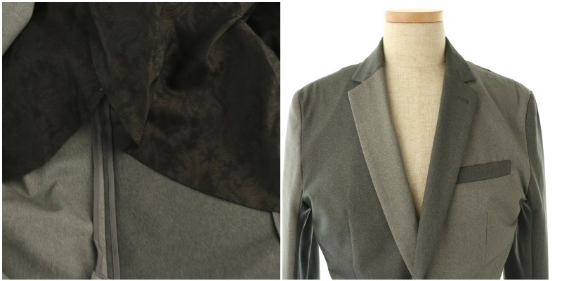 【素材】ジャケット 表地 ポリエステル 別布 ポリエステル 裏地 キュプラ 袖裏地 ポリエステル パンツ 表地 ポリエステル 別布 ポリエステル 別布2 綿