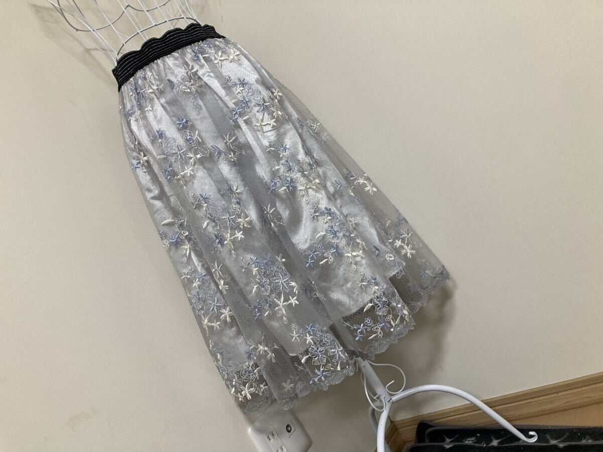 | 自己紹介欄にて発送対応させて頂けない日をお知らせしていますのでご確認をお願いします。 ショッパーは付きません。 サイズ:M 総丈: 約68cm ウエスト平置き: 約32cm〜約j50cm(ゴム生地) ※素人採寸の為少しの誤差はご容赦ください。 色:ライトグレー、ライトブルー系 状態:usedですので、小さな汚れ等気にされる方、used に新品同様のクオリティをお求めの方、話し合いも頂けず評価よりクレームをお申し出になられる方はお控え下さい。 繊細な花刺繍が入ったレース生地が大胆に使用されたスカートです。 内側にはサテン生地が重ねられています。 スタイリングに取り入れるだけで今年らしさがアップするアイテムです。 ウエストはスリット入りゴム生地です。 チュール裾周りにはレースが飾られています。 一同梱発送、送料について一 佐川急便での発送の際のみ3日間分同梱発送します。 最初の落札日を含む3日間分です。 ご不明な際にはお問い合わせ下さい。 4日目分以降の同梱はお受けしませんので必ずご了承の上ご入札お願いします。 佐川急便の送料は 北海道1000円 東北800円 関東から九州は700円です。 沖縄は1800円 離島は別途中継料金がかかります。 佐川急便以外の発送はお受けしません。 | |||
