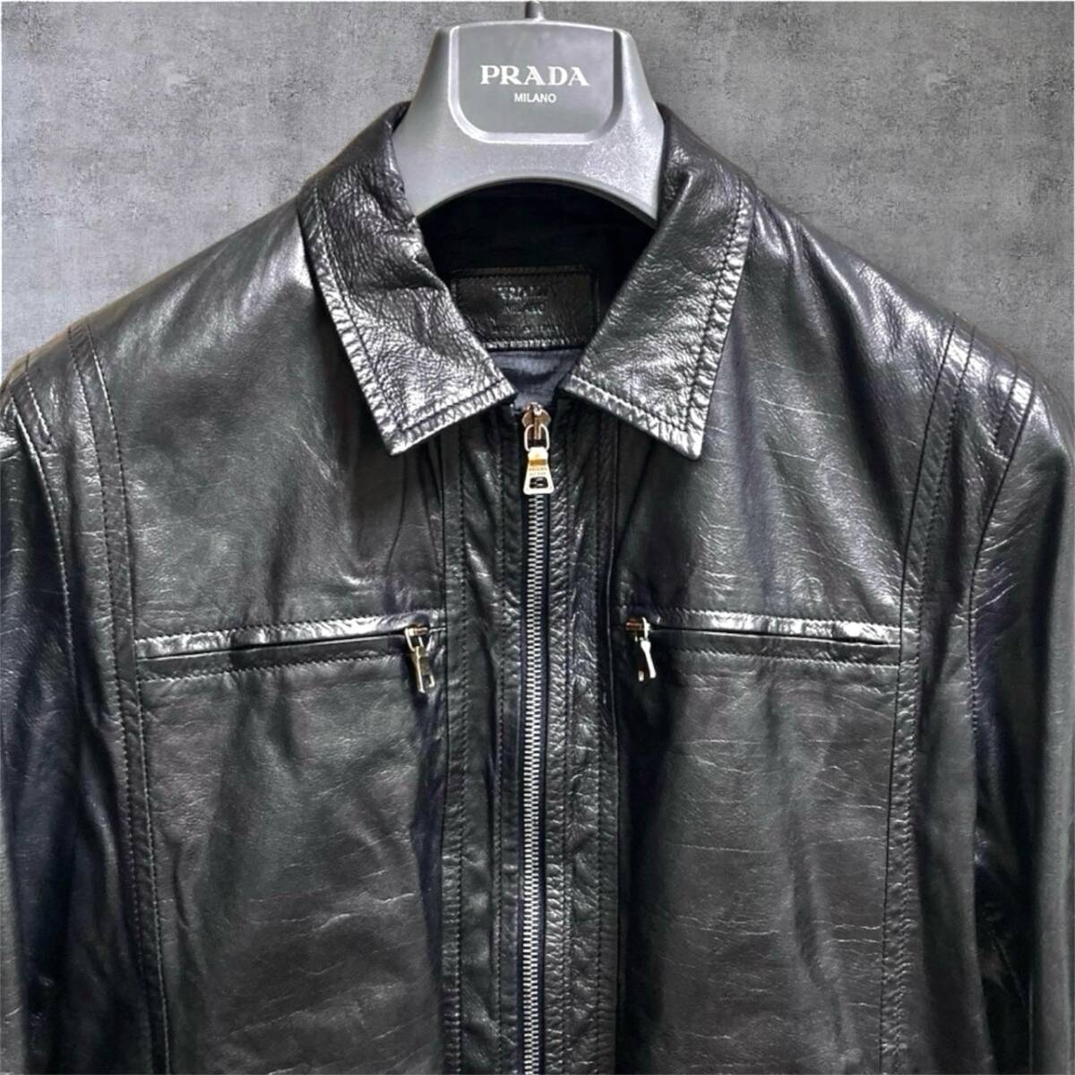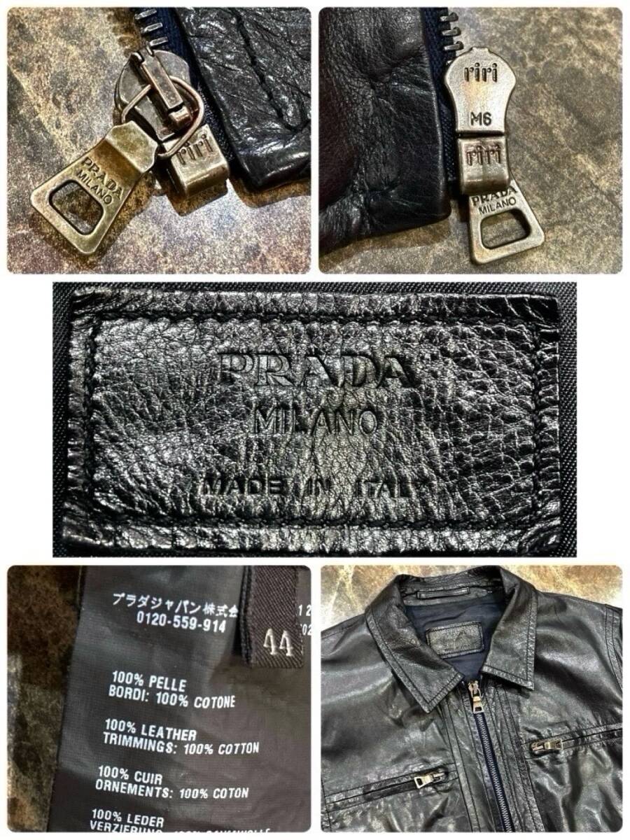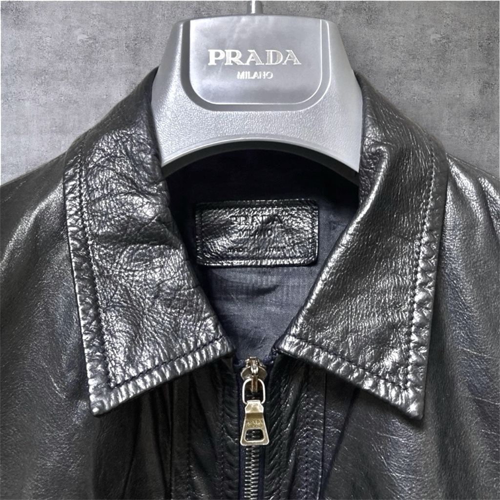 極美品◆90万【プラダ・シボ革タグ】イタリア製◎一点物◎【PRADA】黒色◎Mくらい ブルゾン ラムスキン レザー ジャケット メンズ/ダウン