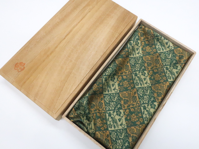 《京都一輝堂》リサイクル着物 和装小物 和雑貨 ふくさ 花鳥柄 木箱入り 25w07-8999