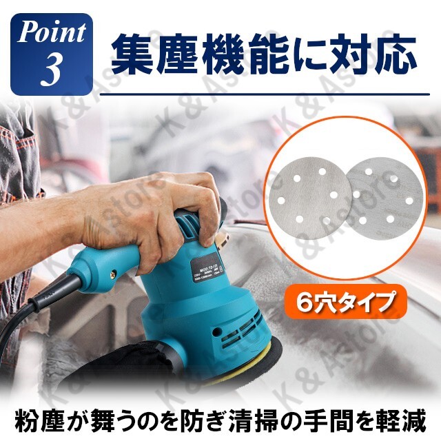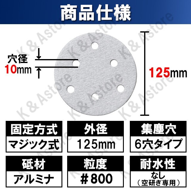 サンドペーパー 紙やすり 125mm サンディングペーパー ヤスリ 電動サンダー グラインダー マジックペーパー マジック式 6穴 800番 #800
