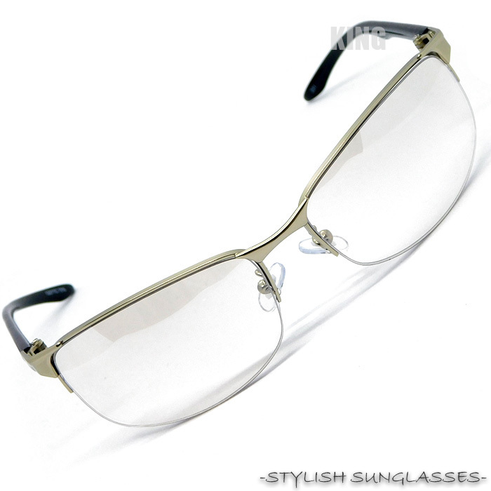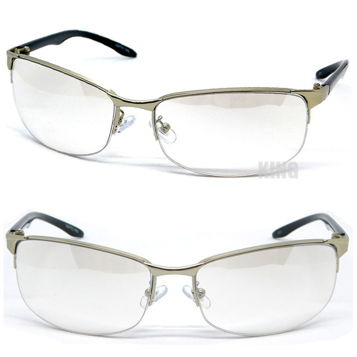 送料無料 オラオラ系 チョイワル系 ハーフリム型 サングラス メンズ UVカット ブロー 伊達メガネ ドライブ 運転 強面 クリアレンズ 新品□