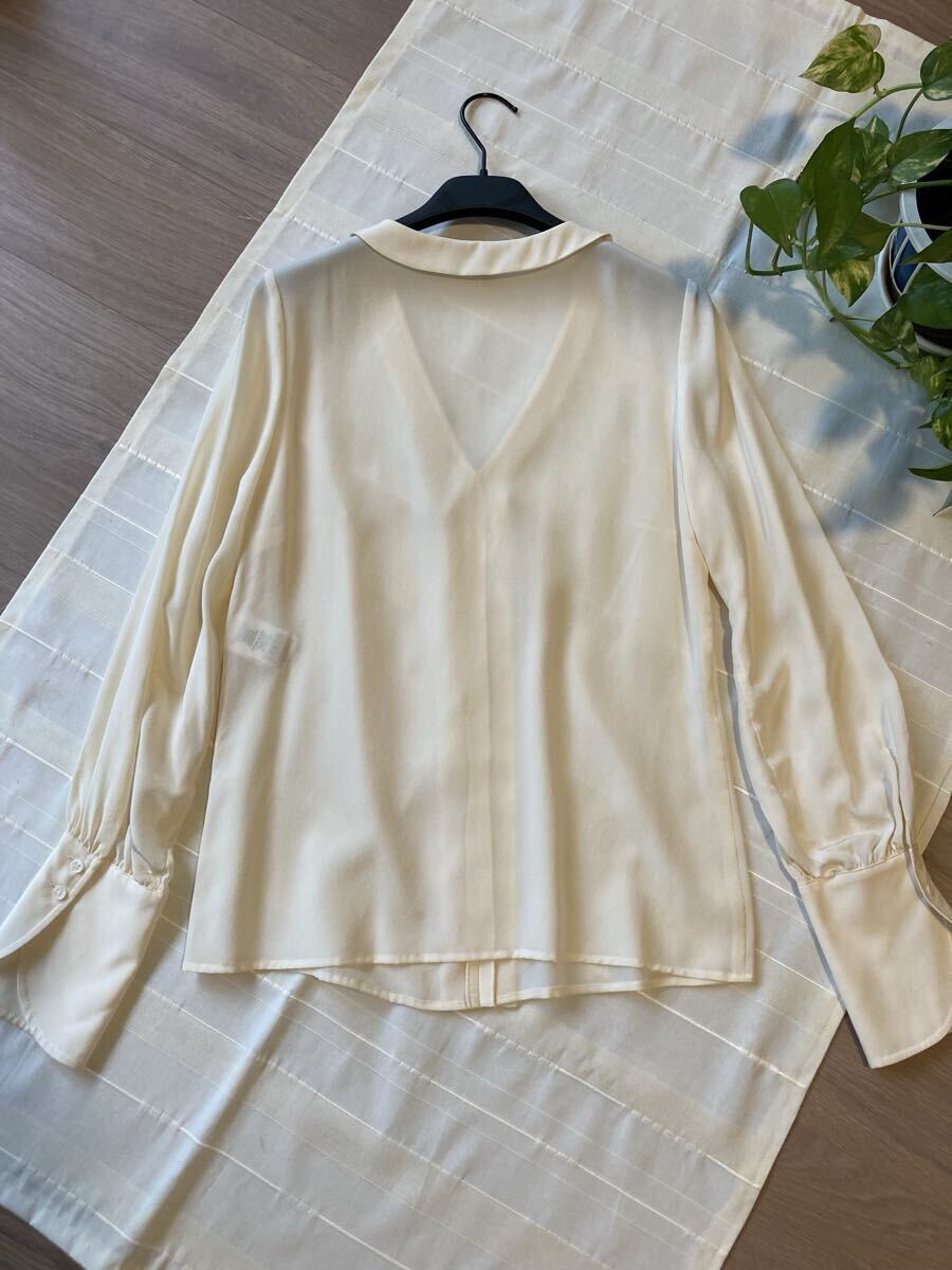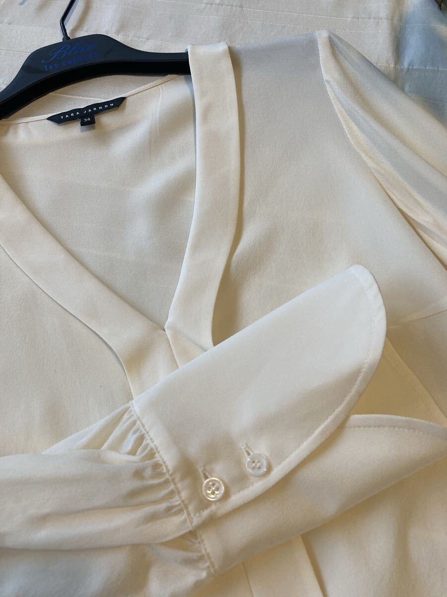 TARA JARMON*タラジャーモン◆シルク100%のブラウス*トップス*アイボリーホワイト*長袖*ドレスシャツ*Mぐらい*ほぼ未使用*