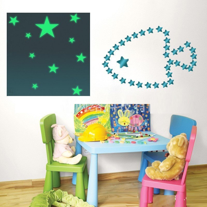 光る!ミラーステッカー 【星アソート/鏡面ブルー】 夜光 蓄光 壁紙シール リビング 寝室 子供部屋 ウォールデコ 模様替え