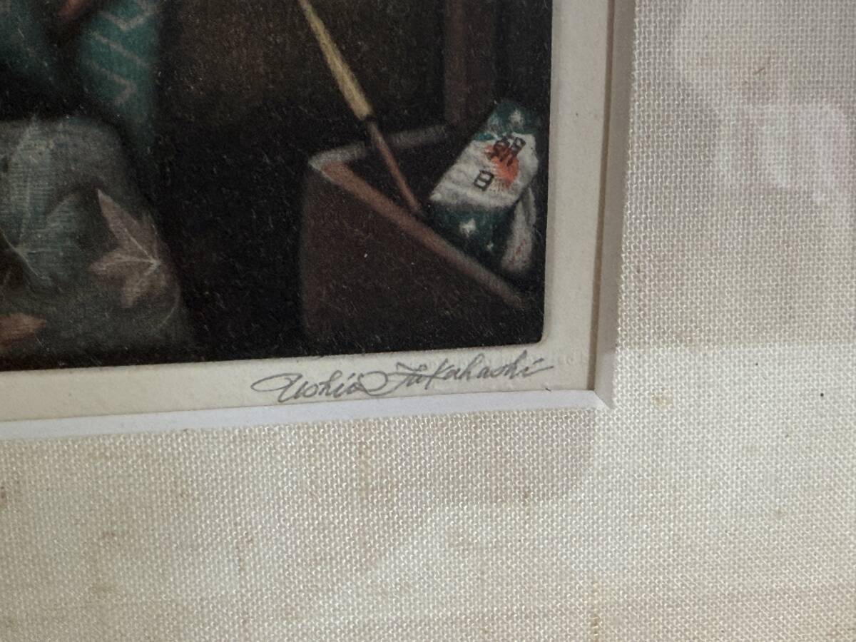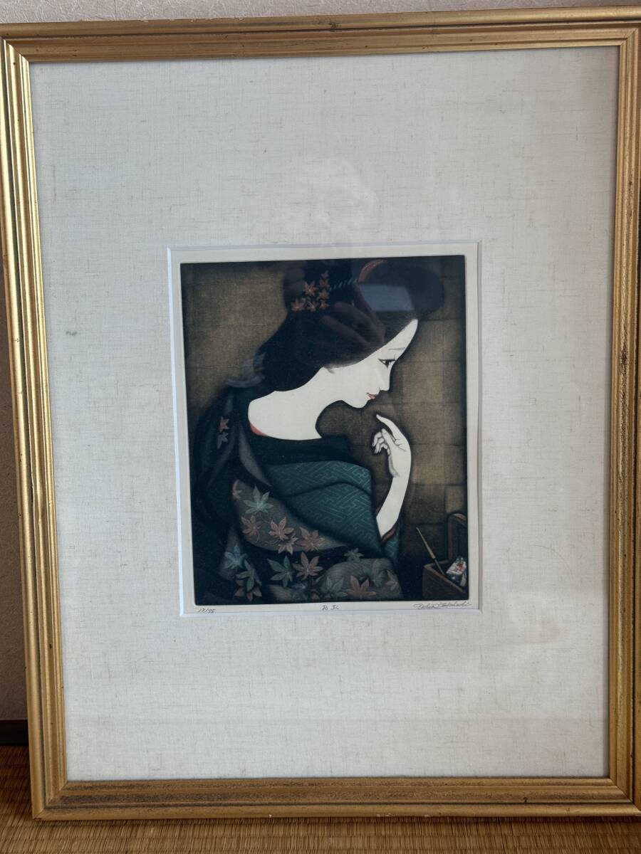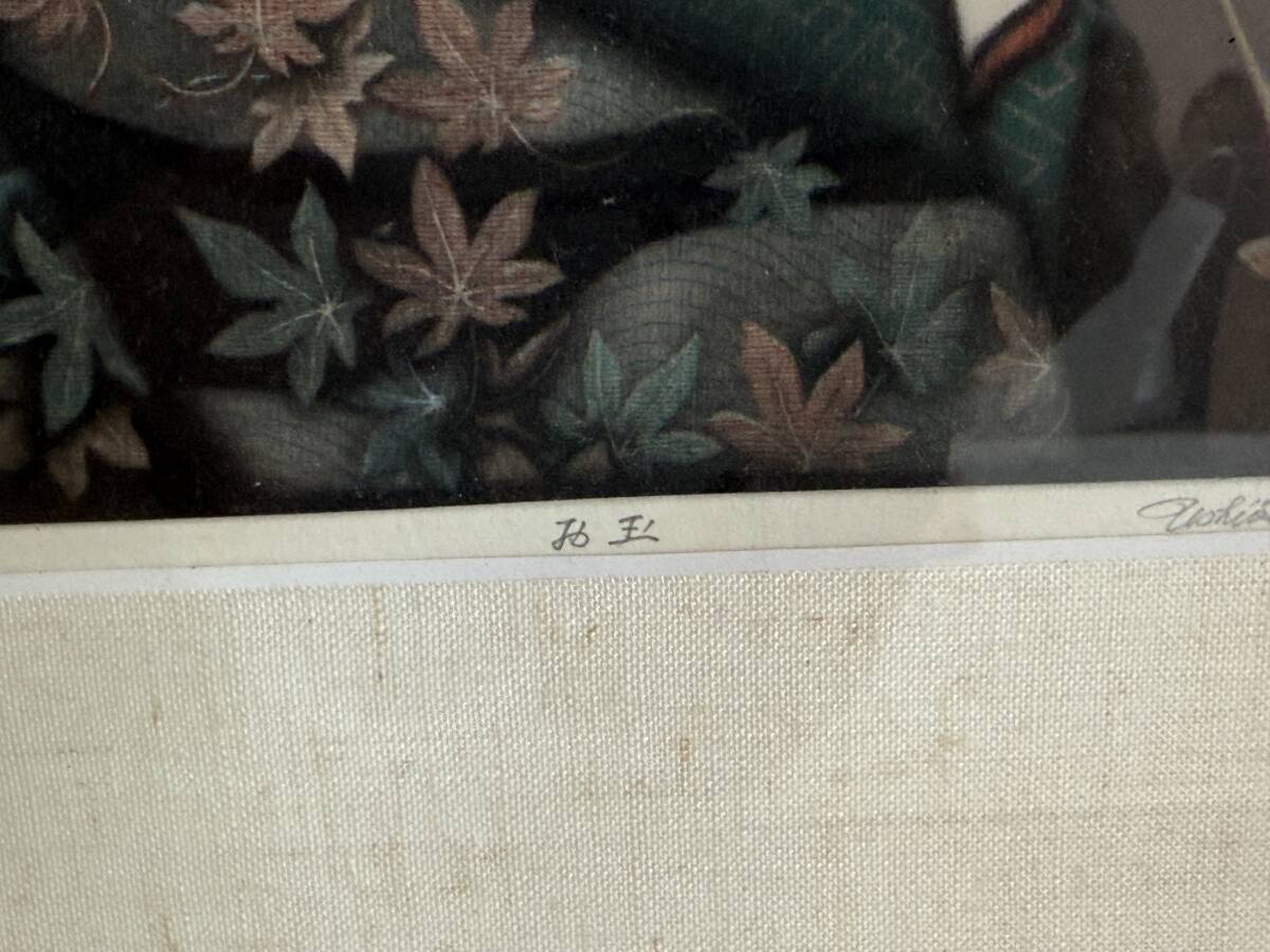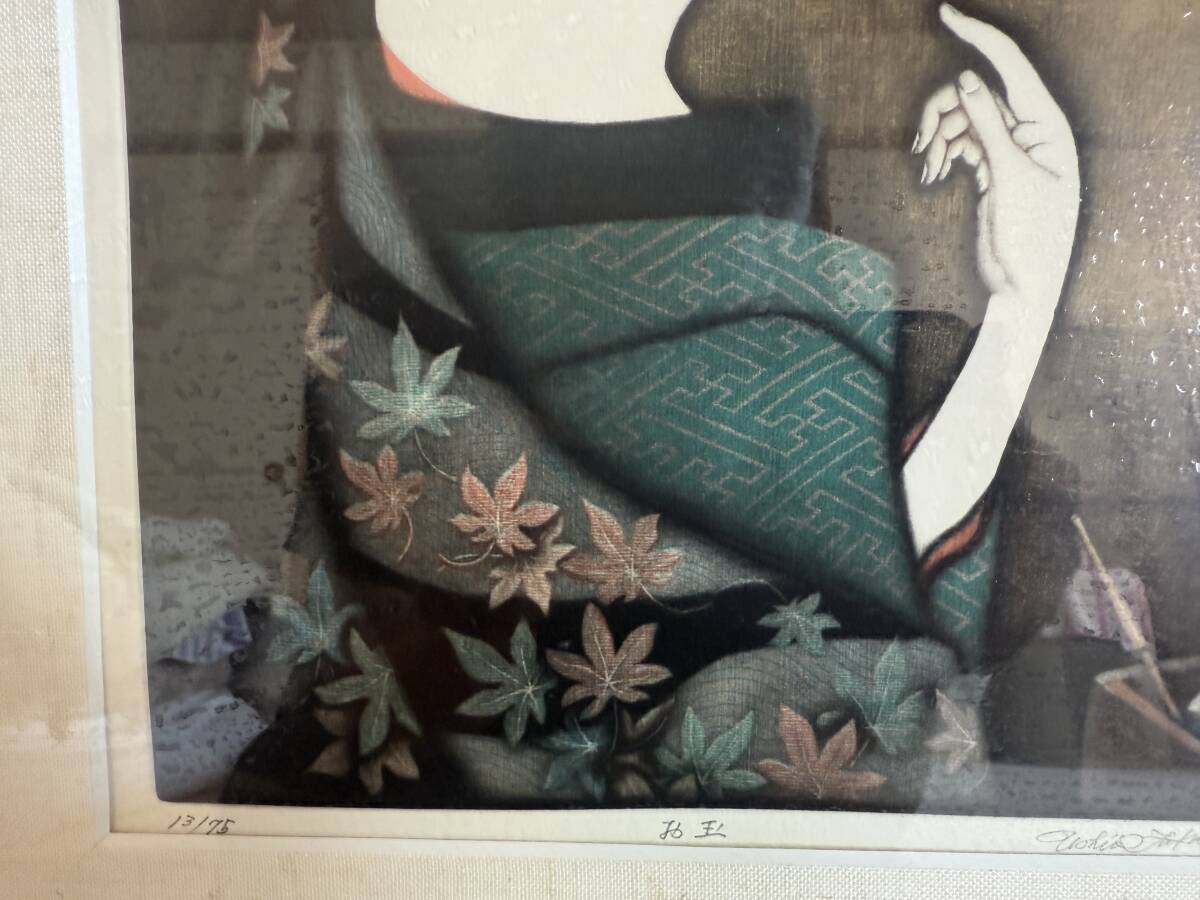 技法は高度なメゾチントを用いており、着物地の繊細な質感表現が見事な、気品あふれる純和風の作品です。