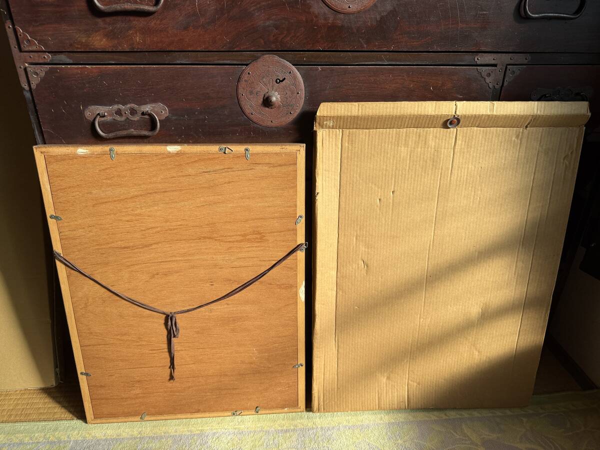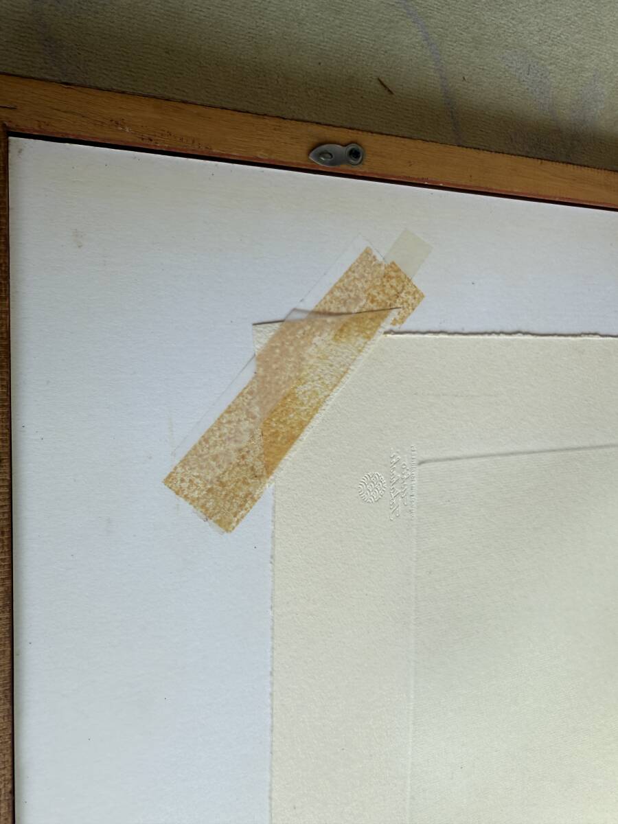 額装については、マットに固定しているヒンジテープが経年劣化しているため、その上から市販のテープで補強してあります。ただし、作品本体には一切触れておりませんのでご安心ください。