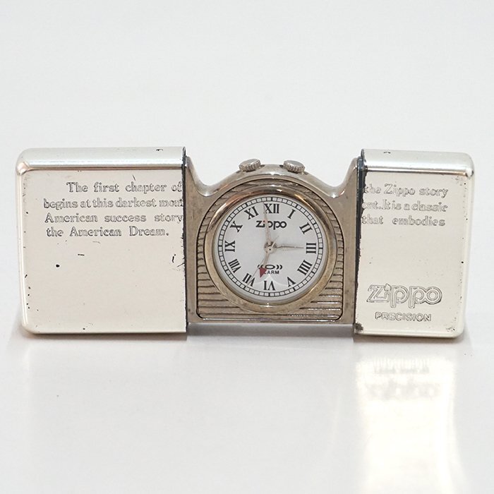 《中古品》zippo ポケットクロック 動作品 ライター型時計 アラーム動作未チェック キズあり 取説・箱なし 本体のみ(西)