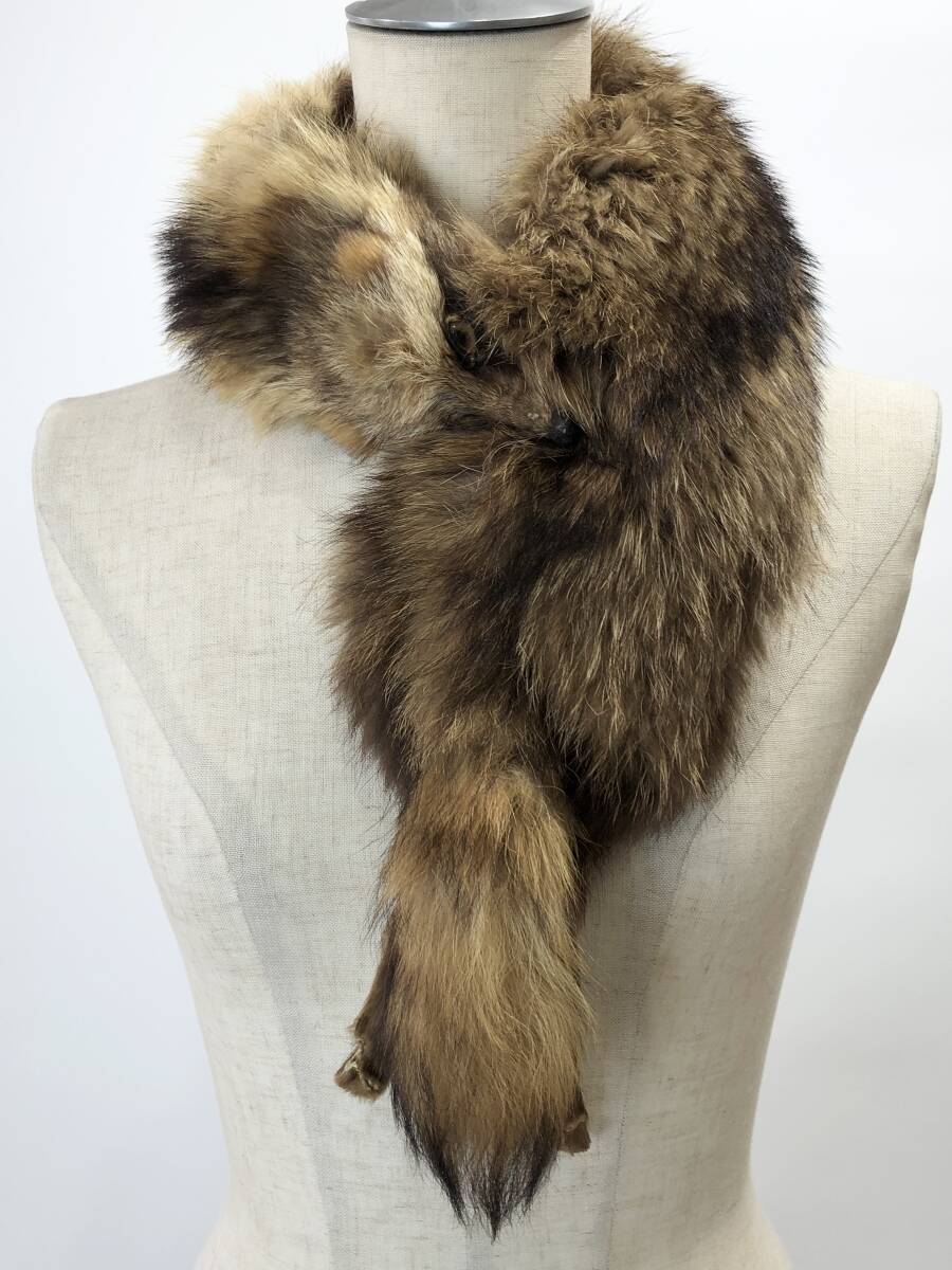 【古着】 リアルファー ティペット 襟巻 毛皮 アニマル ブラウン タヌキ 狸 ヴィンテージ■0930K② フック仕様 |
