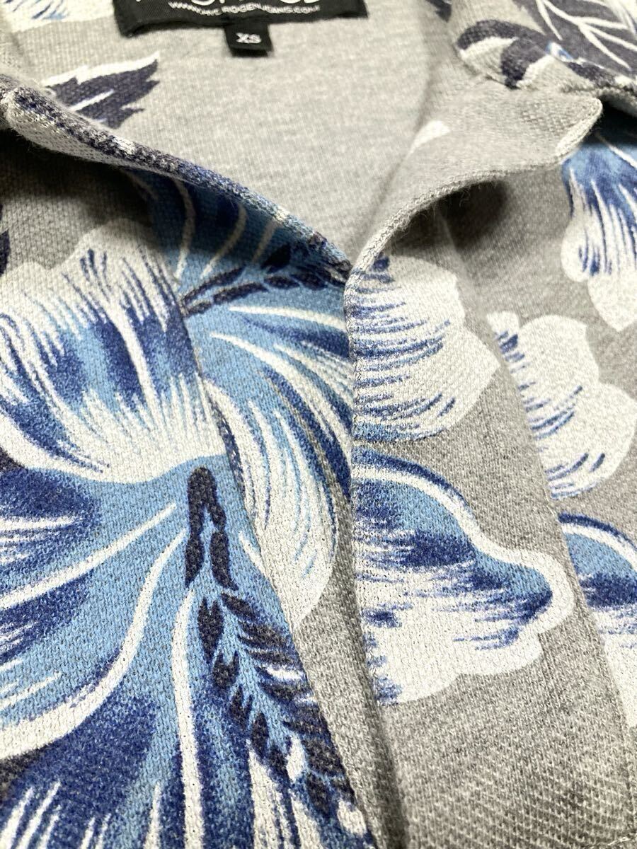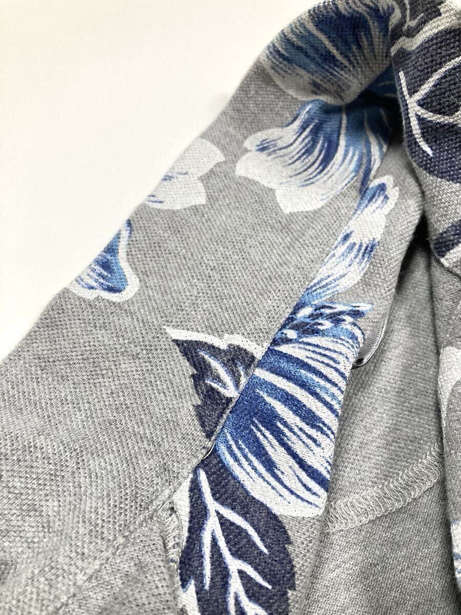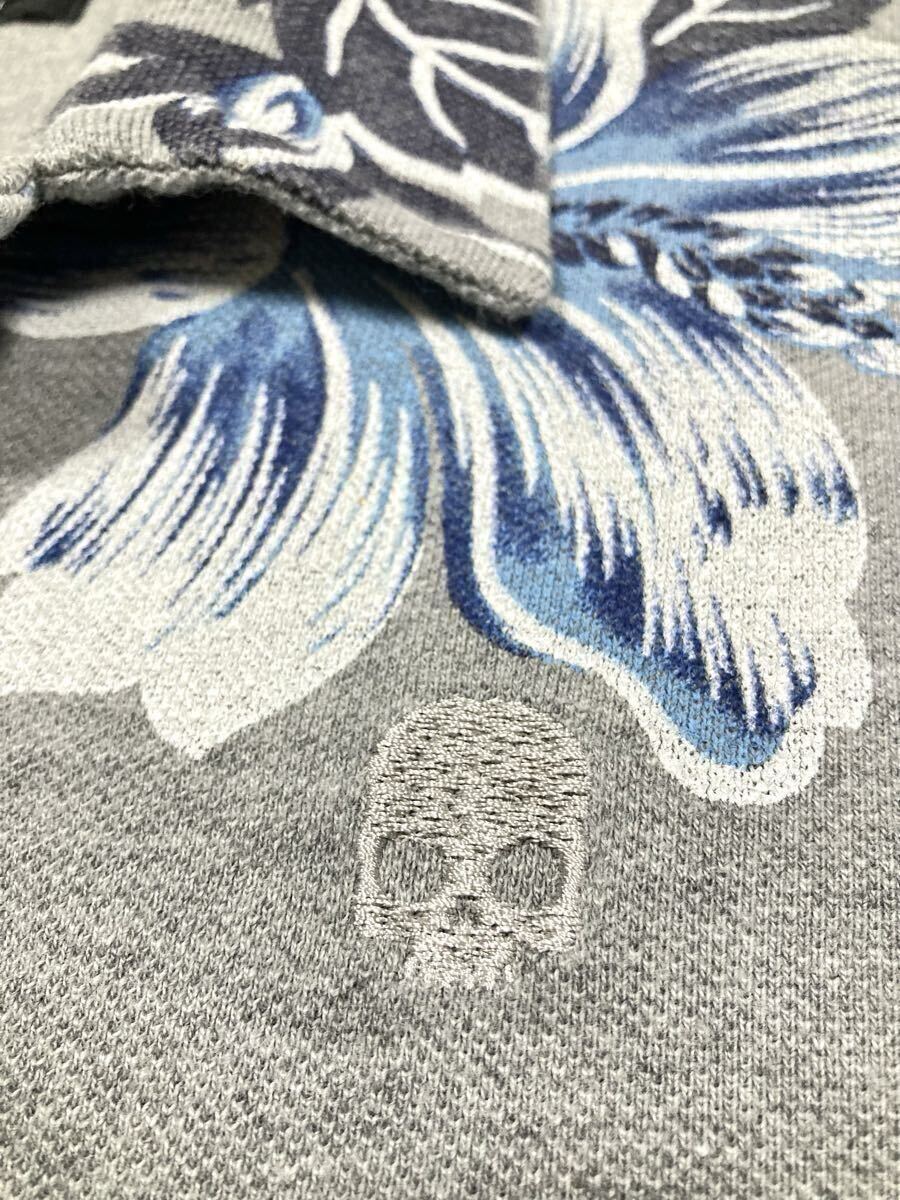 今回出品致しましたのは、ウォッシュド加工が施された、ボタニカル柄でスカルの刺繍がデザインされた、スキッパーネックの半袖ポロになります。