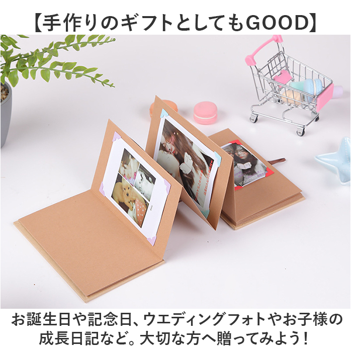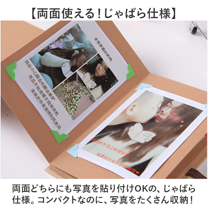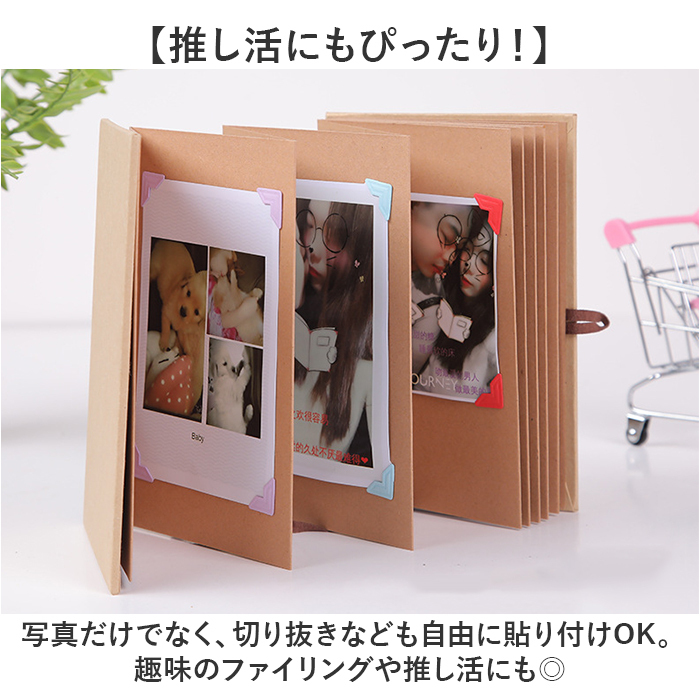 商品説明 | ・・【大切な思い出を可愛く保存♪】 ・自分らしく、自由にデコレーション!「フォトアルバム 折り畳み式」が登場。 ・【両面使える!じゃばら仕様】 ・両面どちらにも写真を貼り付けOKの、じゃばら仕様。コンパクトなのに、写真をたくさん収納! ・【世界にひとつのアルバムが完成】 ・シンプル無地なので、シールでデコったり、メッセージを書くのもオススメ☆楽しくアレンジ! ・【手作りのギフトとしてもGOOD】 ・お誕生日や記念日、ウエディングフォトやお子様の成長日記など。大切な方へ贈ってみよう! ・【推し活にもぴったり!】 ・写真だけでなく、切り抜きなども自由に貼り付けOK。趣味のファイリングや推し活にも◎ ・【専用のカラフルシールが可愛い☆】 ・写真の四隅をとめる、カラフルデコレーションシールを付属。これだけで可愛く仕上がる! ・※両面合わせて34ページとなります。 |