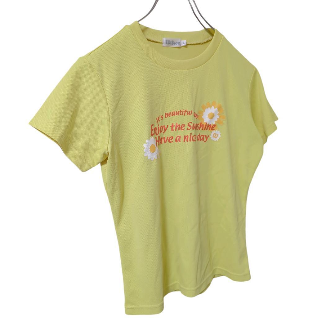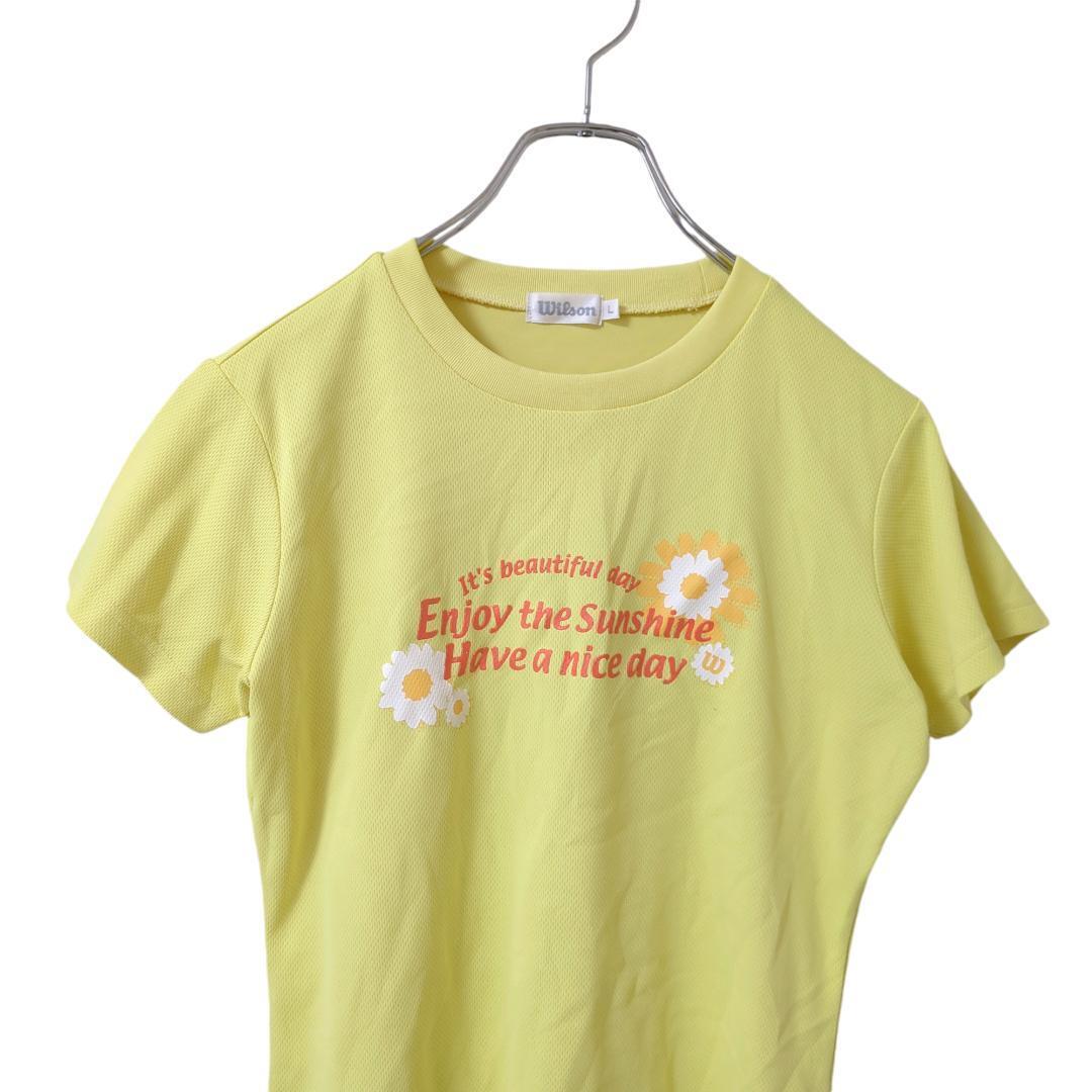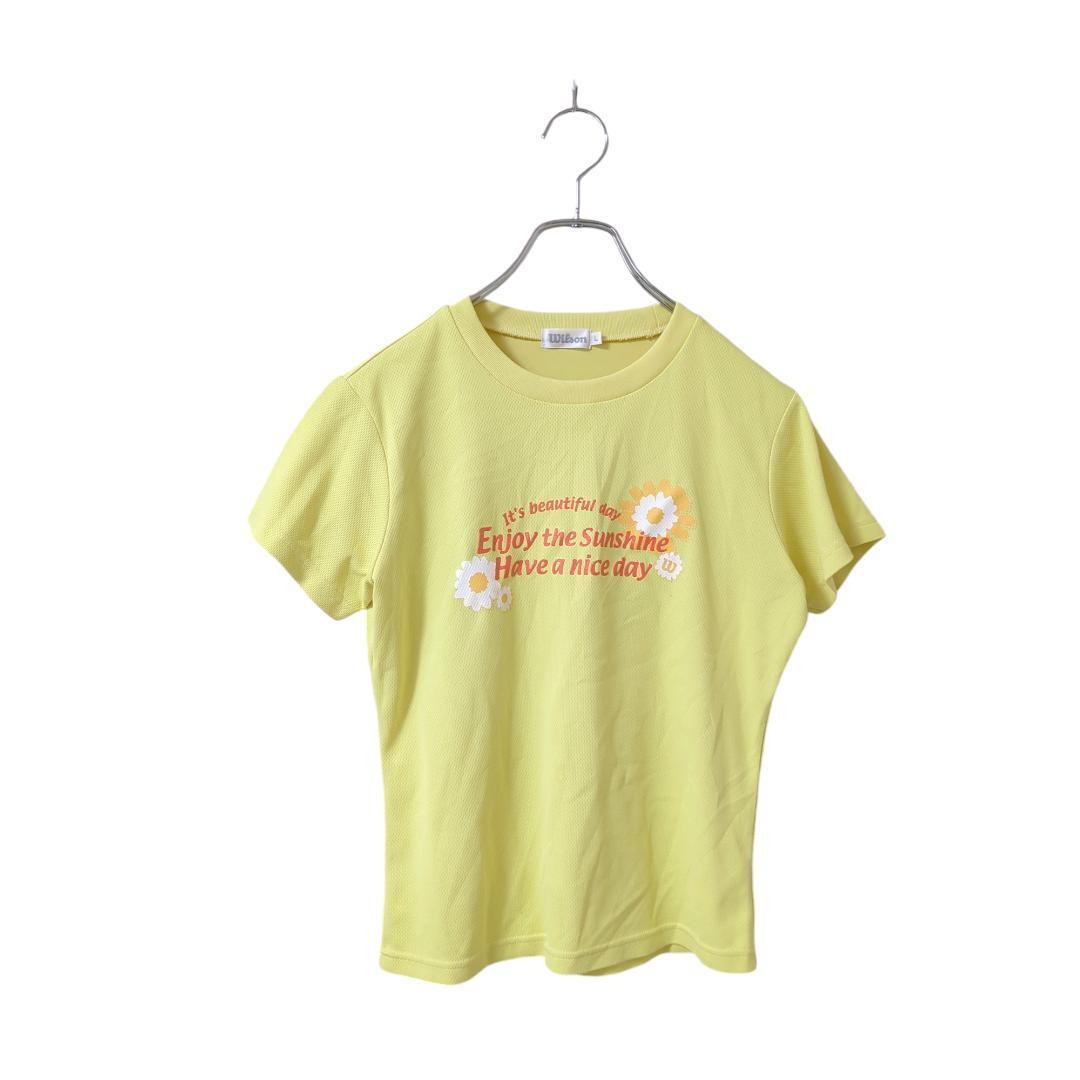ウィルソン(L)花柄センター英字ロゴTシャツ*テニスウェア*Uネック*イエロー