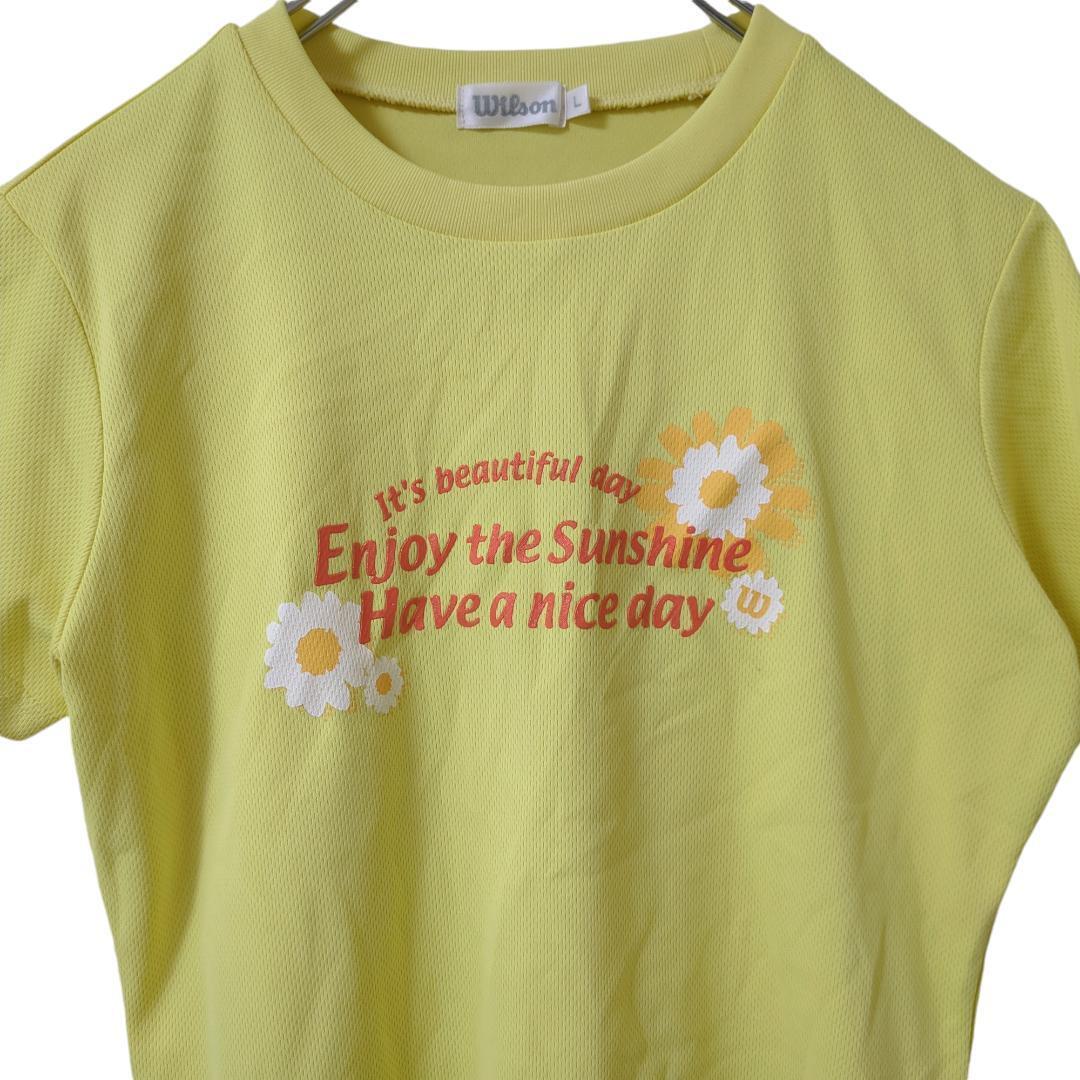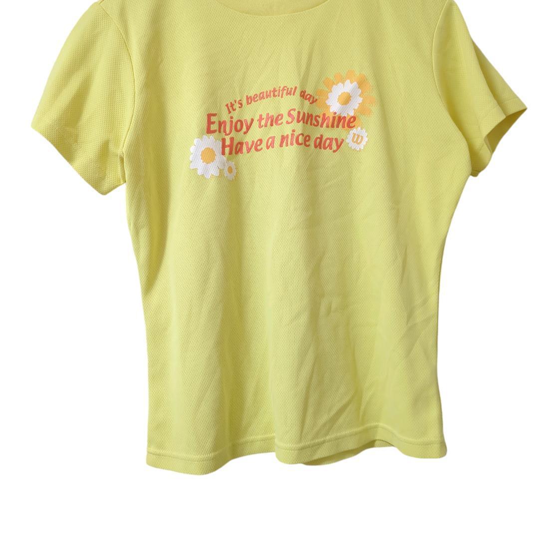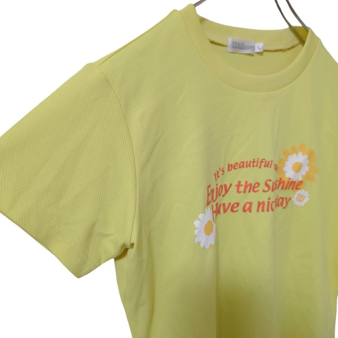 ウィルソン(L)花柄センター英字ロゴTシャツ*テニスウェア*Uネック*イエロー