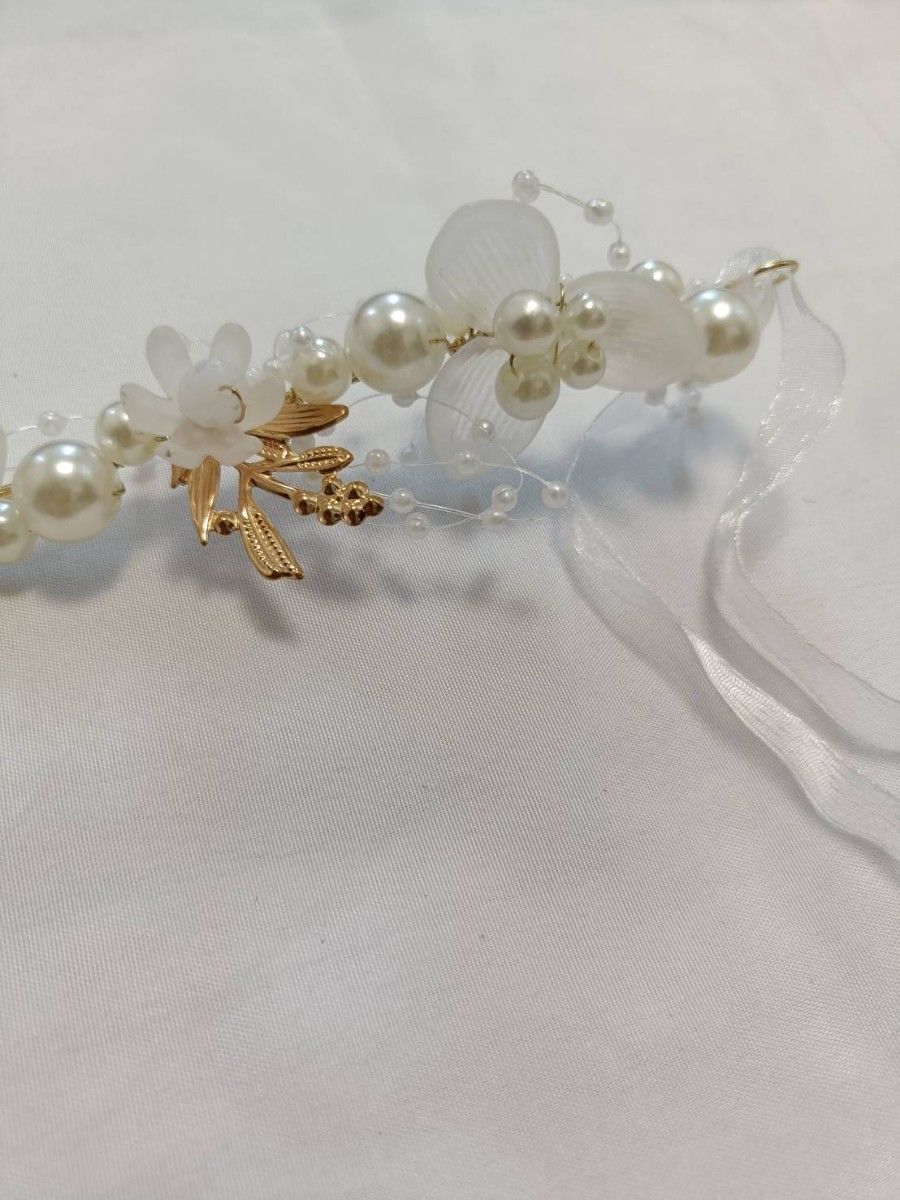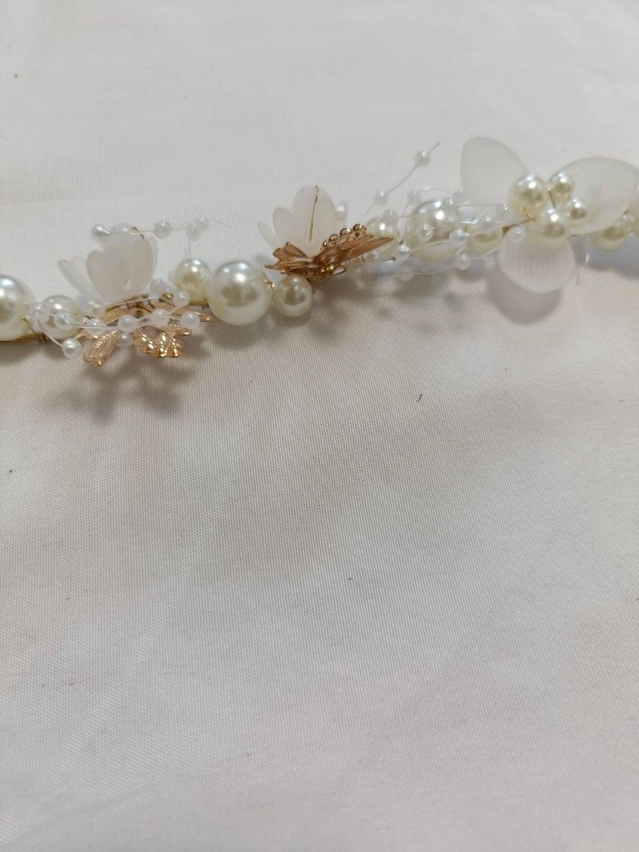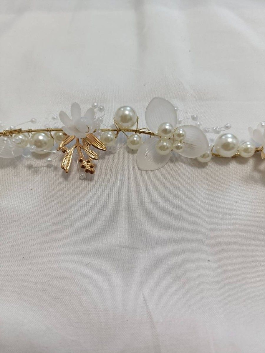 パールとフラワーモチーフが華やかなヘッドドレスです。