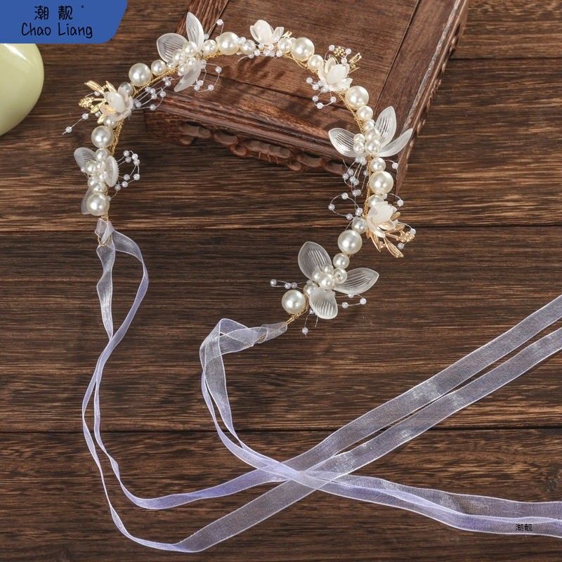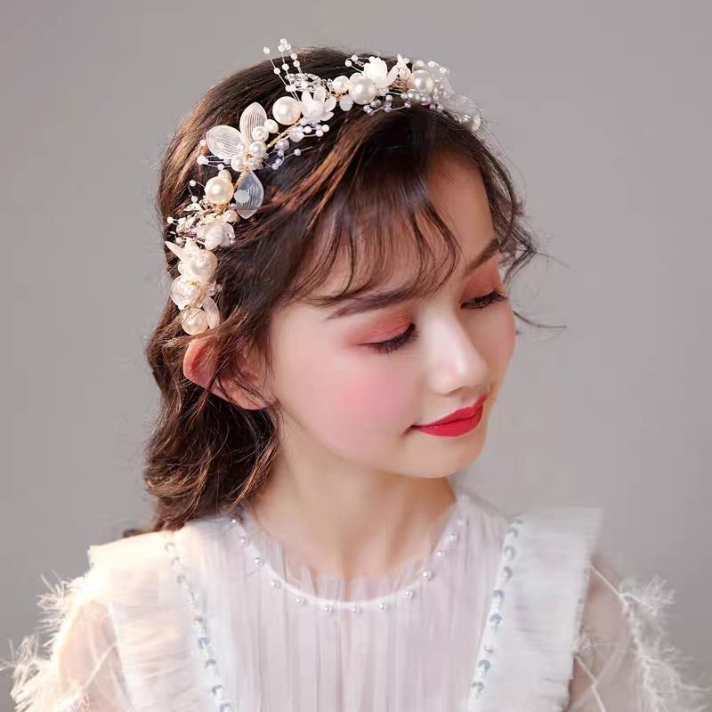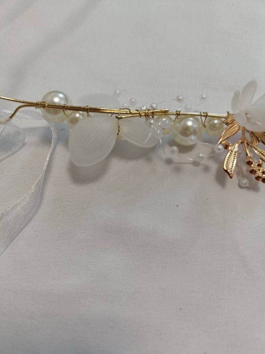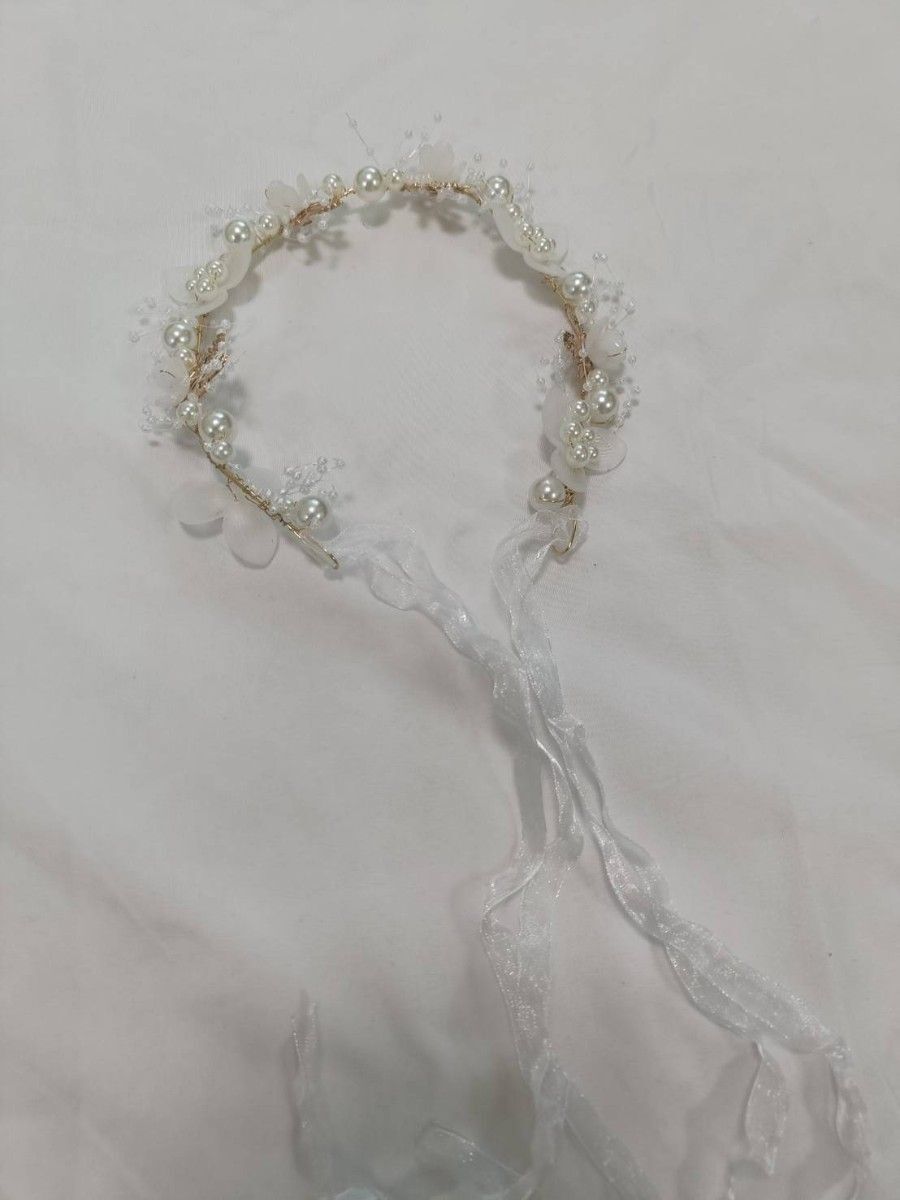パールとフラワーモチーフが華やかなヘッドドレスです。