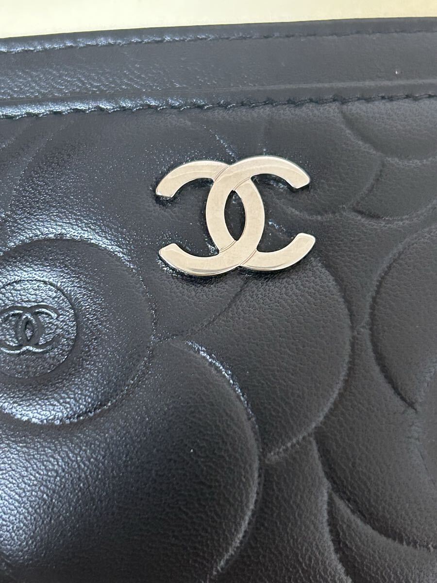 om/松 9e87 未使用 シャネル CHANEL ココマーク パスケース カメリア ラムスキン ギャラ