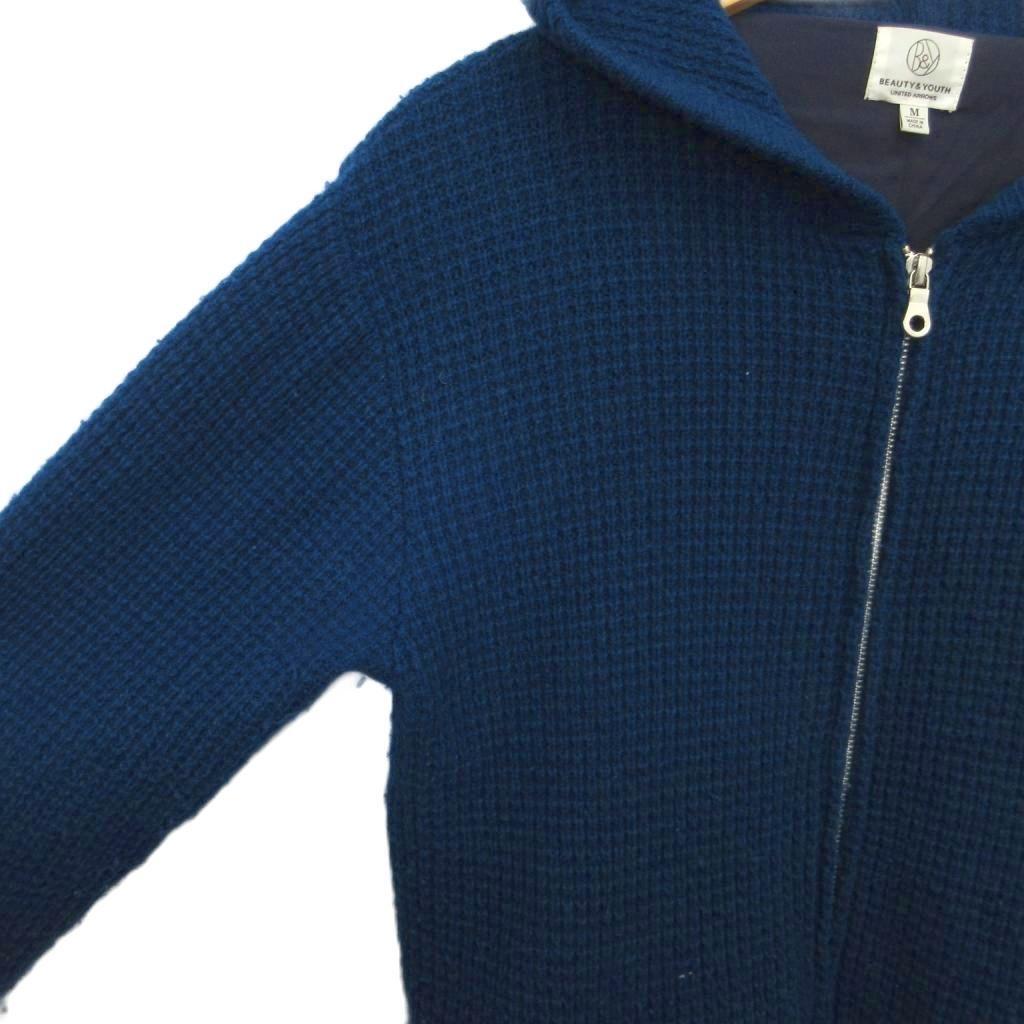 BEAUTY&YOUTH ビューティー&ユース パーカー フーディ ジップアップ ワッフル生地 M 青 ブルー 1228-105-0369 ■YHS5 メンズ