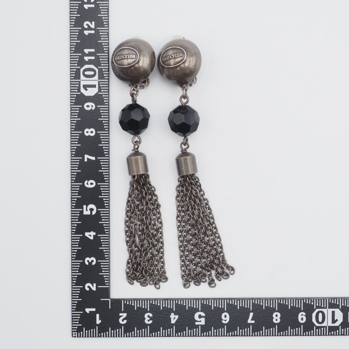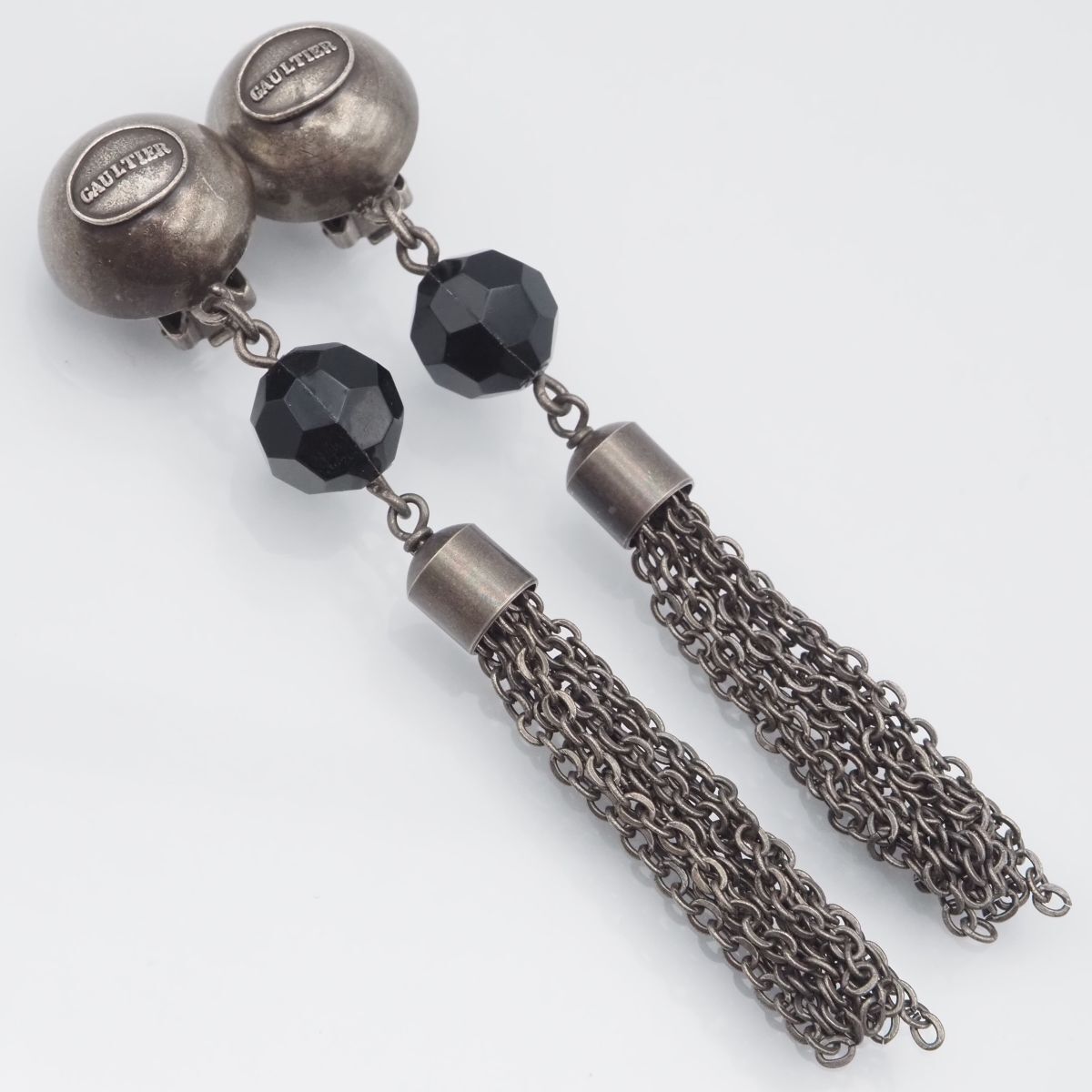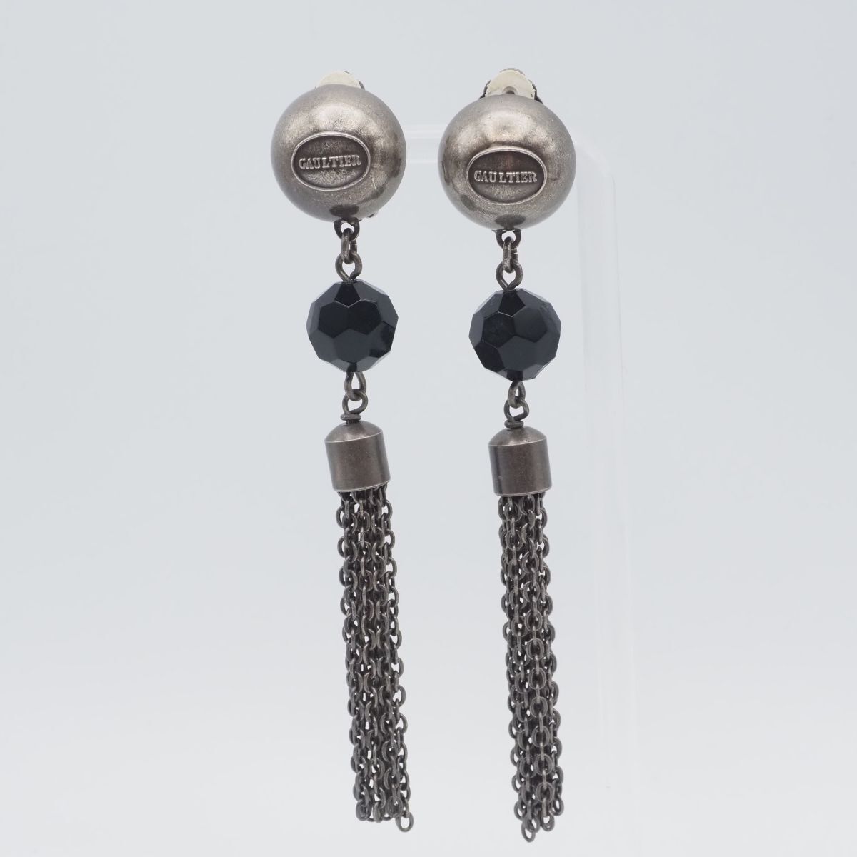 F912 Jean Paul GAULTIER ジャンポールゴルチエ イヤリング 大ぶり オニキス風 ロゴ チェーン デザイン