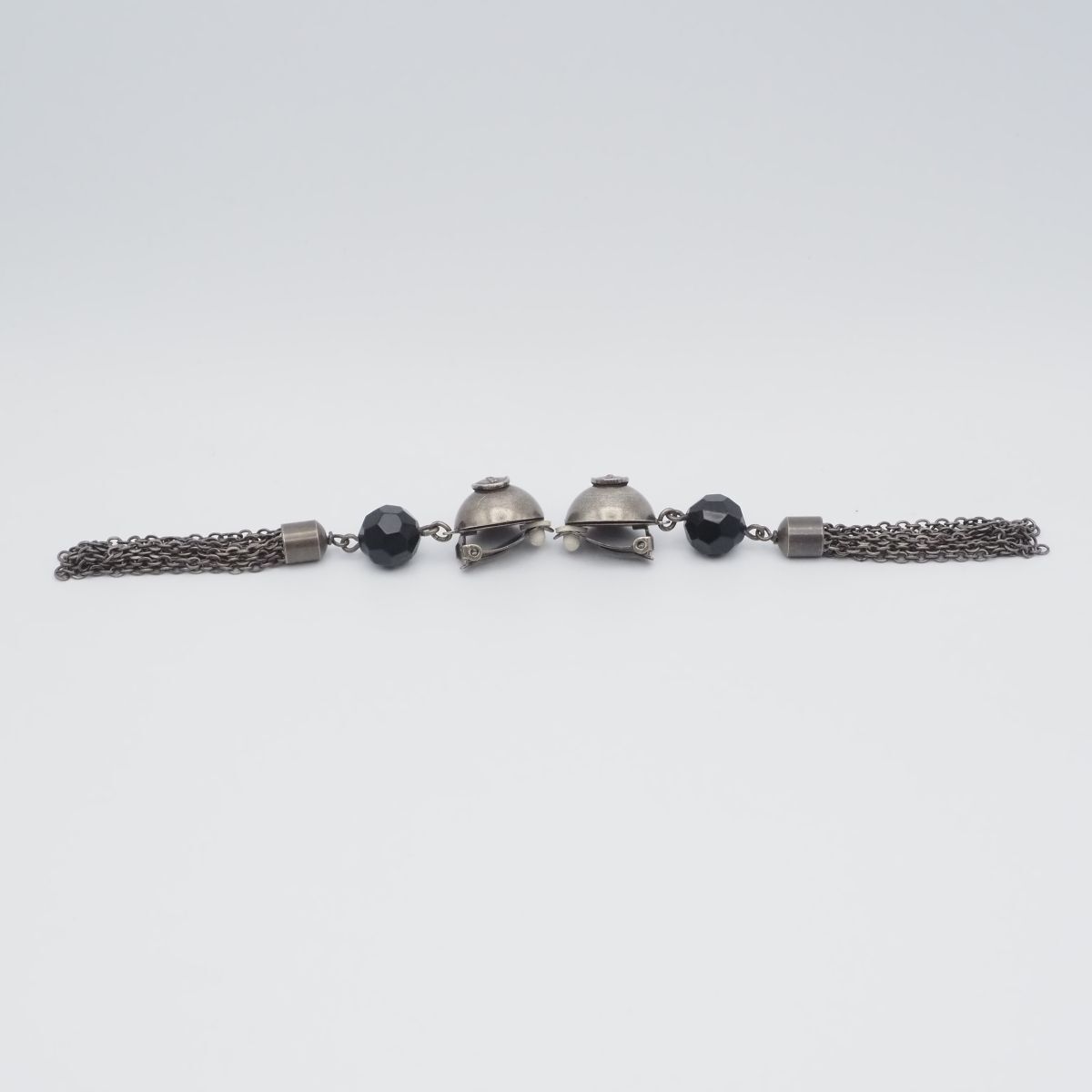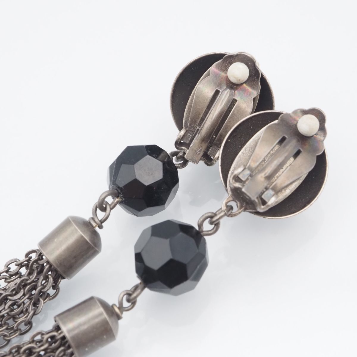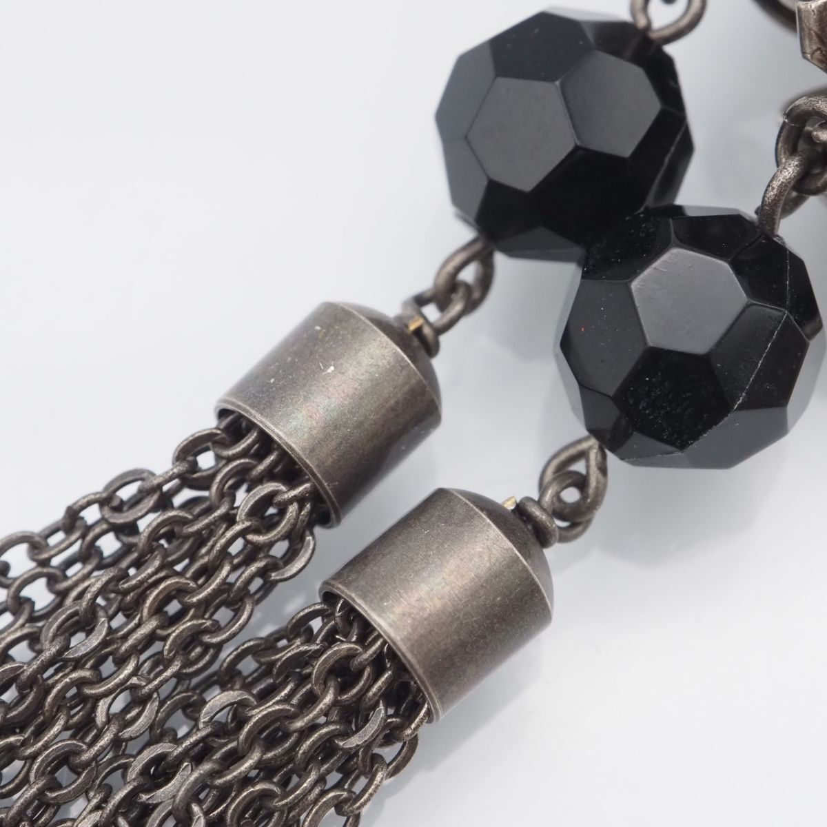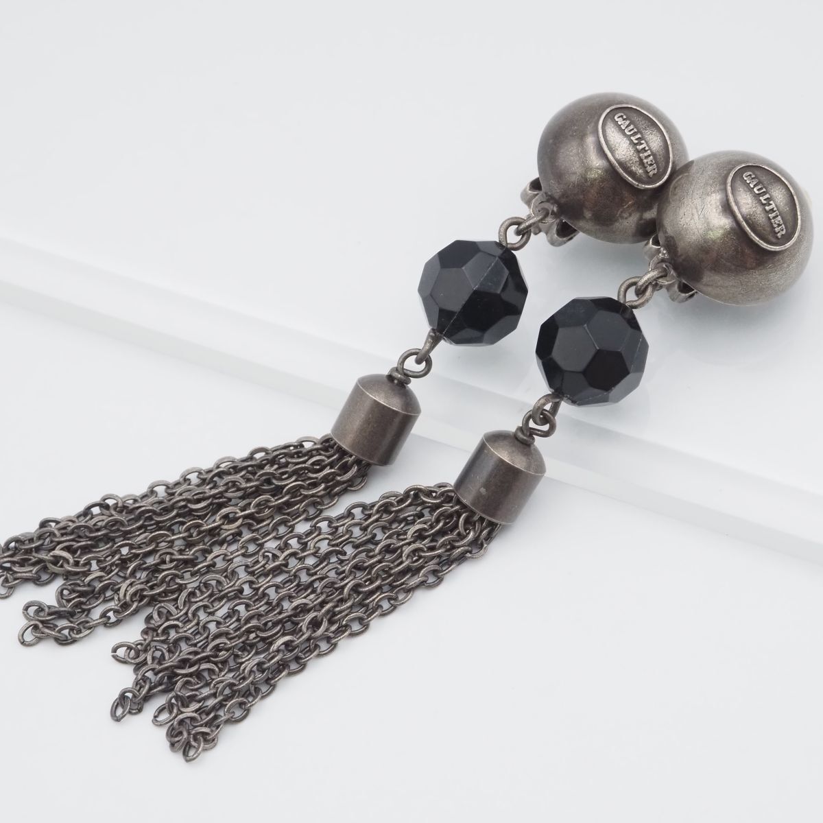 F912 Jean Paul GAULTIER ジャンポールゴルチエ イヤリング 大ぶり オニキス風 ロゴ チェーン デザイン