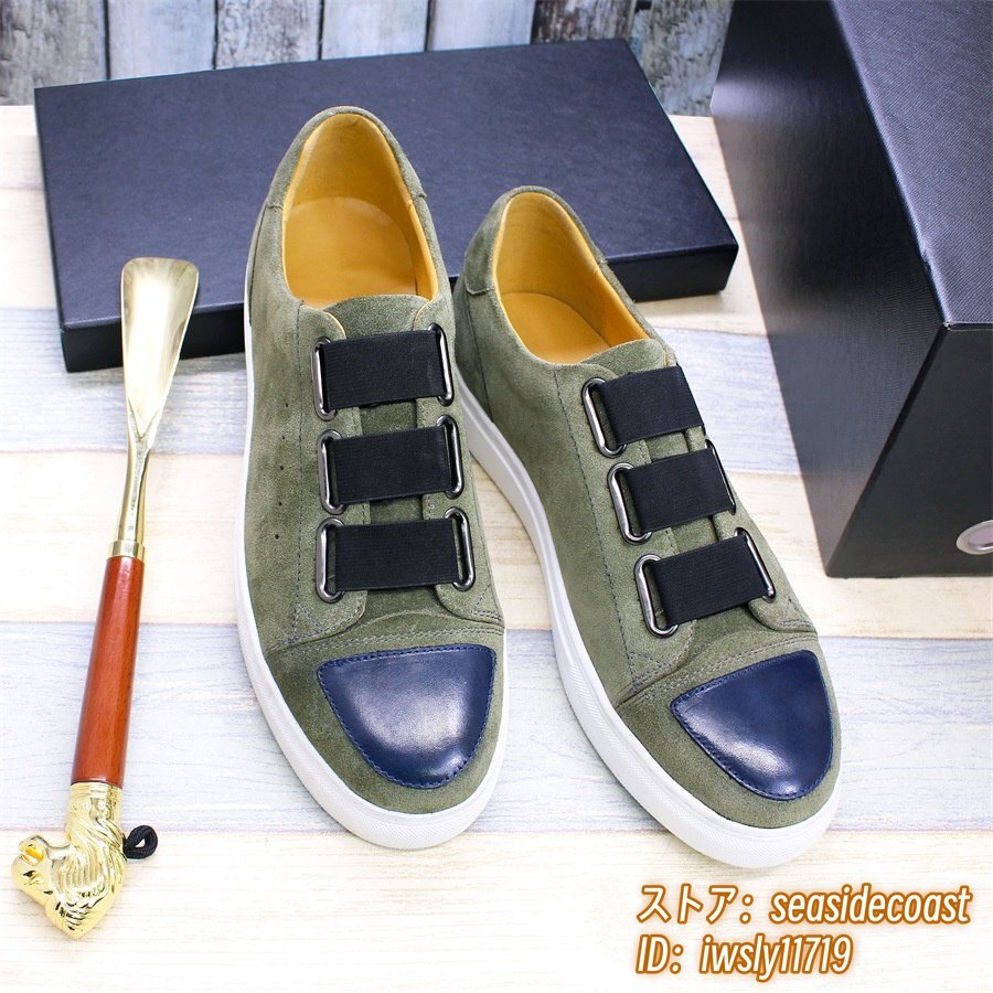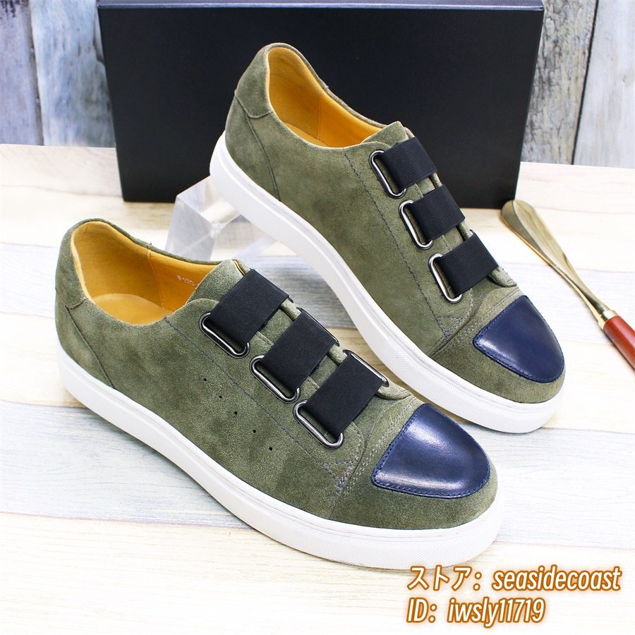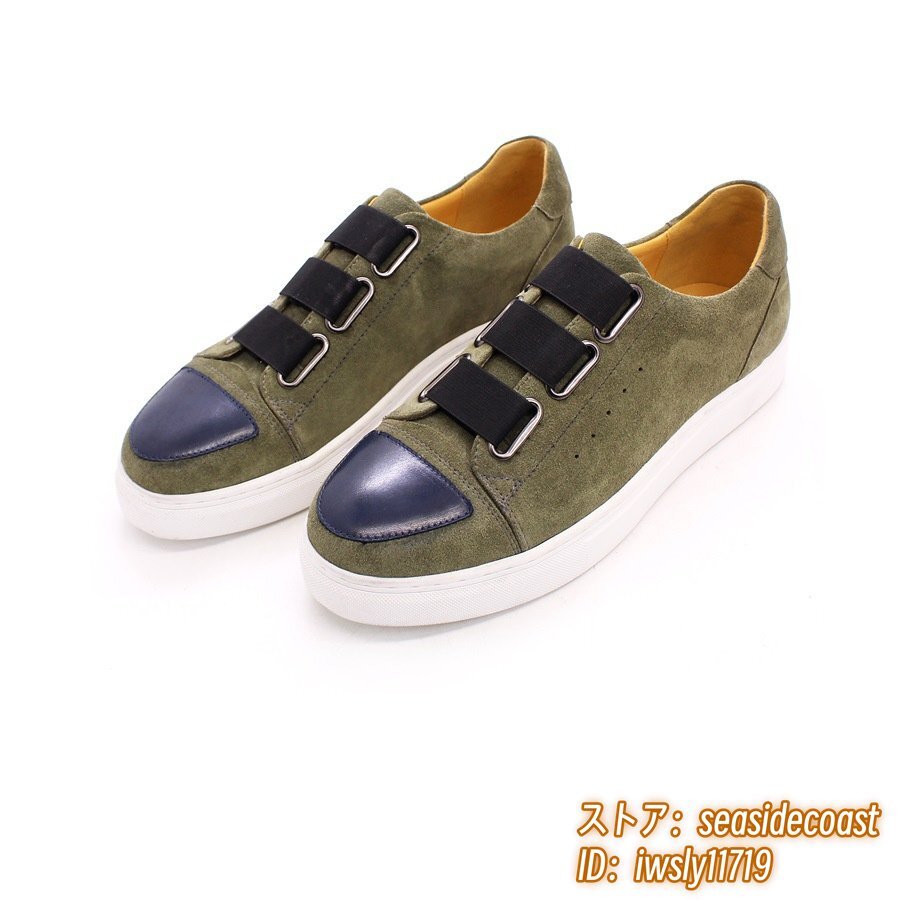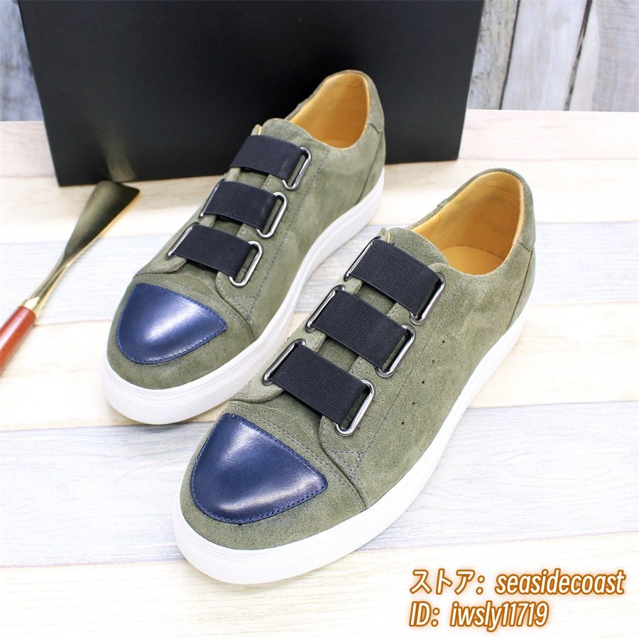 定価5万超◆最高級 スニーカー メンズ 職人手作り 本革 レザーシューズ スエード 紳士靴 革靴 快適 ローファー スリッポン グリーン 24.5cm