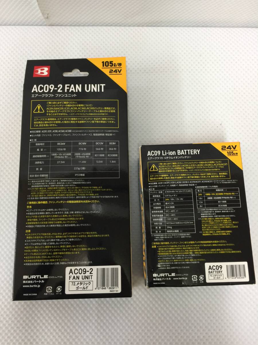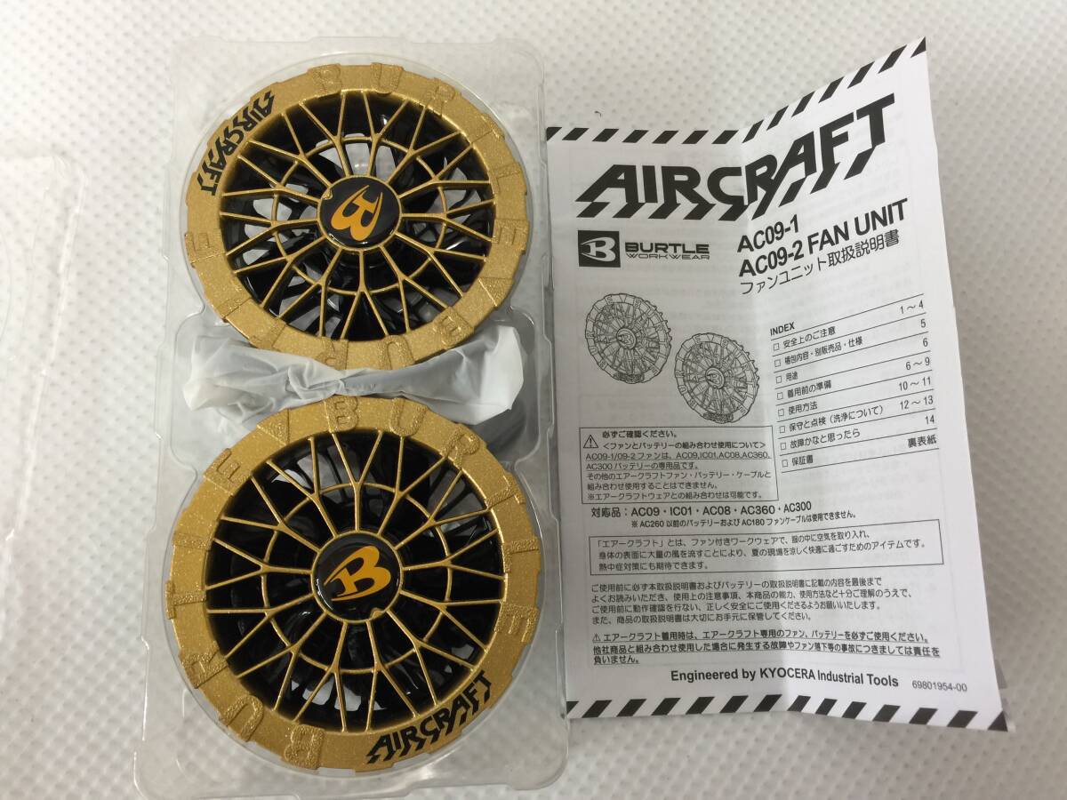 sla788 美品 BURTLE エアークラフト AC09 リチウムイオンバッテリー+AC09-2 ファンユニット メタルゴールド