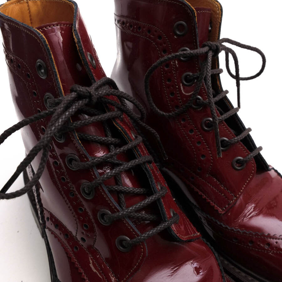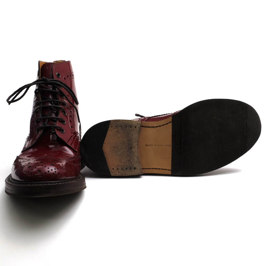 | トリッカーズを代表するプロダクトであるカントリーブーツ。その代名詞となった「M2508 Malton モルトン」。ベンチメイドと呼ばれる一人の靴職人が一足を最初から最後まで担当する方法で作り上げられたこだわりの詰まった一足。ウィングチップの7アイレットブーツで、トゥ・キャップのメダリオンや、パーツごとに施されたブローギングがトラッドな印象。グッドイヤー・ウェルト製法で仕上られるダブル・ソールは、耐久性に富み、カントリー・ブーツだけに田舎道もガンガン歩けるぐらい頑丈。 |