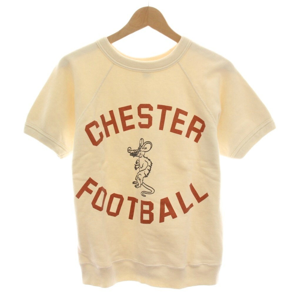 ウエアハウス WAREHOUSE CHESTER FOOTBALL スウェット トレーナー 半袖 クルーネック ロゴ イラスト プリント ストレッチ S アイボリー