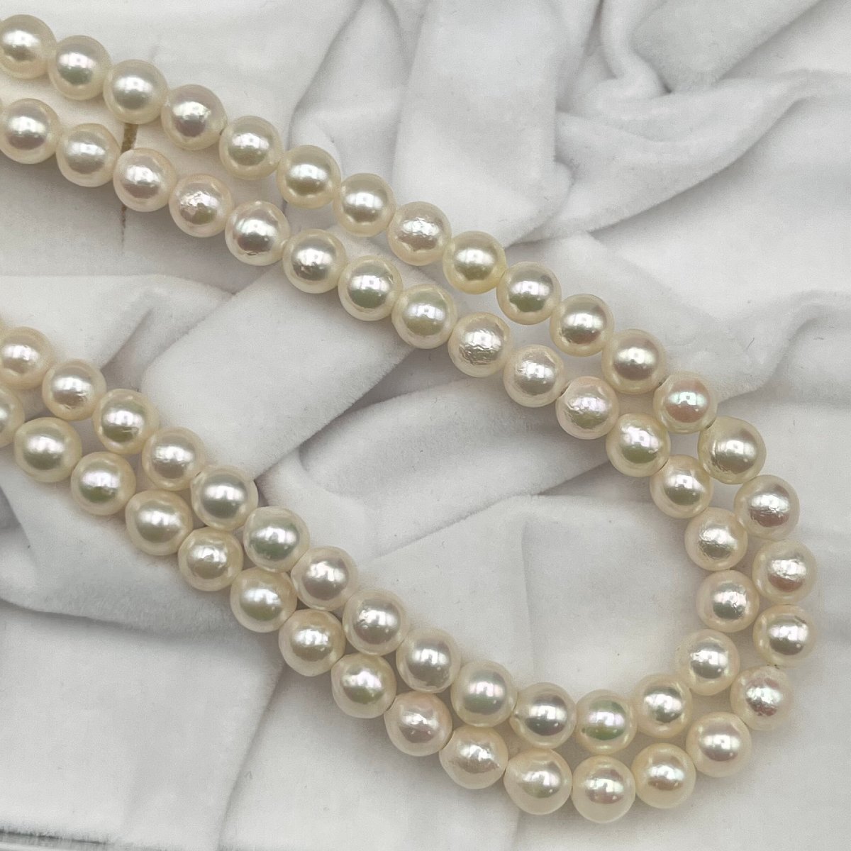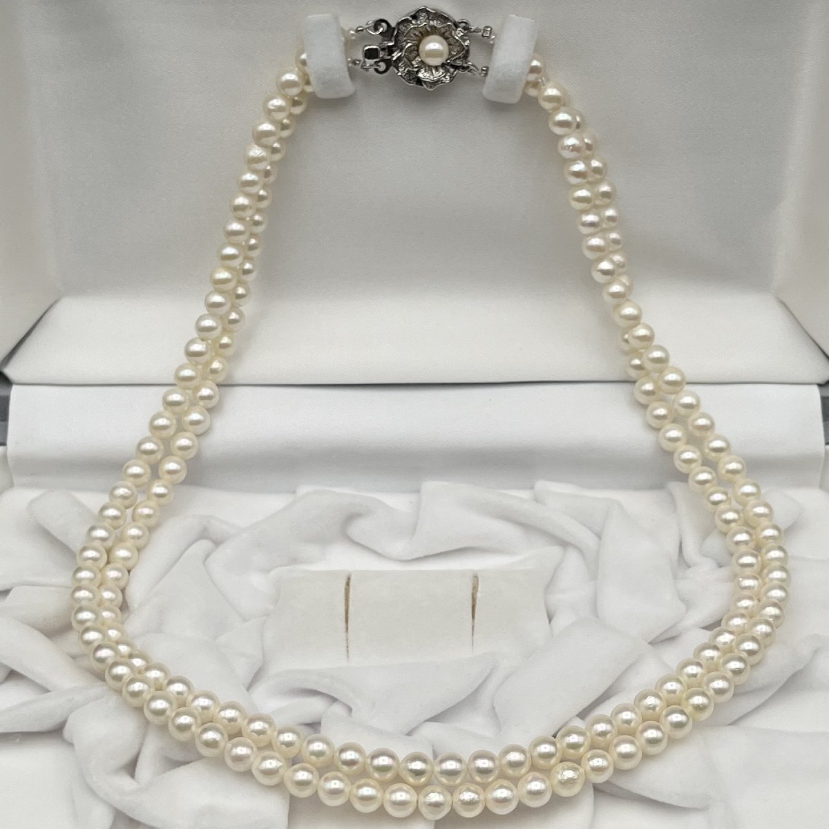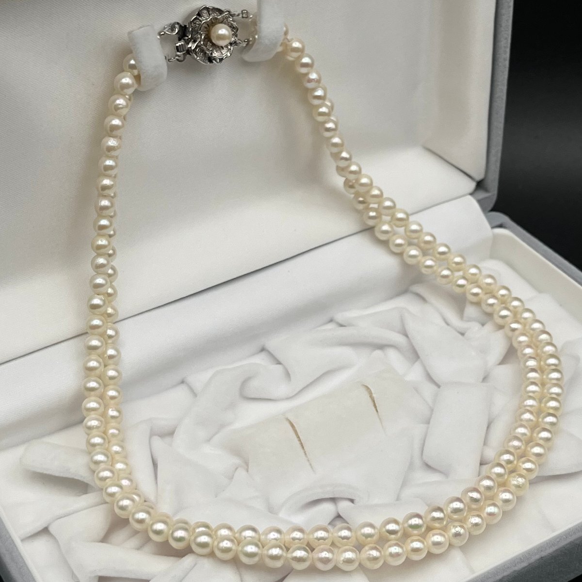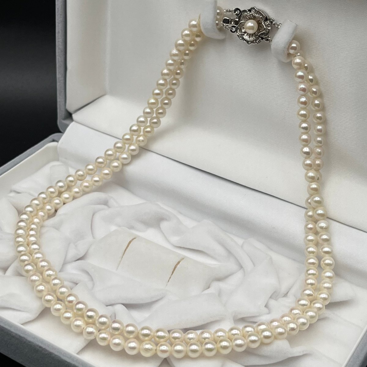 送料無料 オーロラ 花珠 クラス 2連ネックレス 5.0mm アコヤ真珠 あこや Pearl necklace 照り強 本真珠 【1889284-0930】