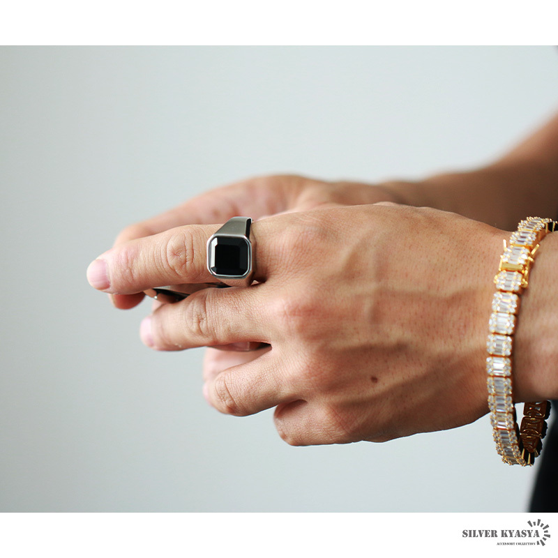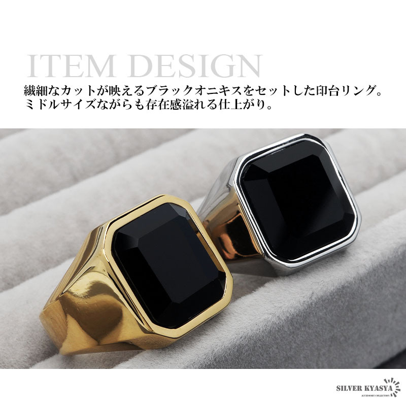 繊細なカットが映えるブラックオニキスをセットした印台リング。ミドルサイズながらも存在感溢れる仕上がりでユニークな指元を楽しめるアイテム。2カラーバリエーションアイテム。