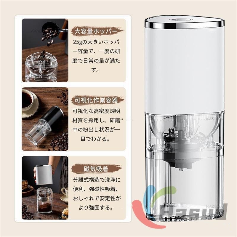 電動コーヒーミル 水洗い可 コーヒーグラインダー 自動停止 コードレス コニカル式 父の日 コーン式 セラミック刃 豆挽き機 ブラック