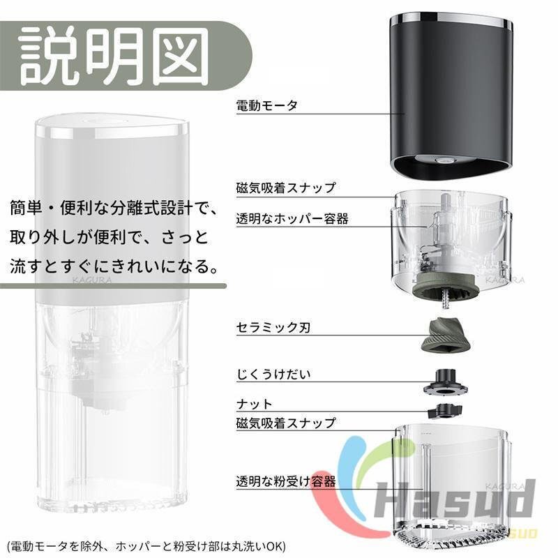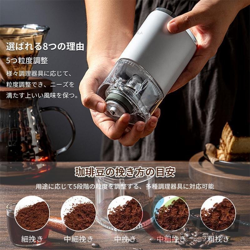電動コーヒーミル 水洗い可 コーヒーグラインダー 自動停止 コードレス コニカル式 コーン式 セラミック刃 豆挽き機 ブラック yhw039