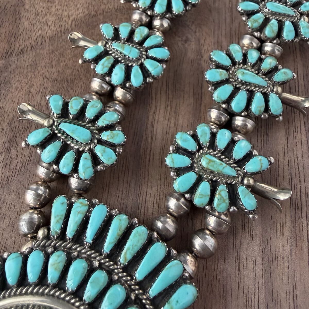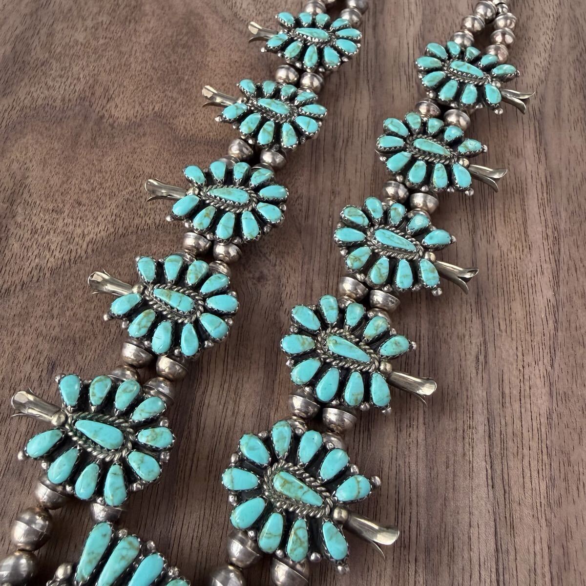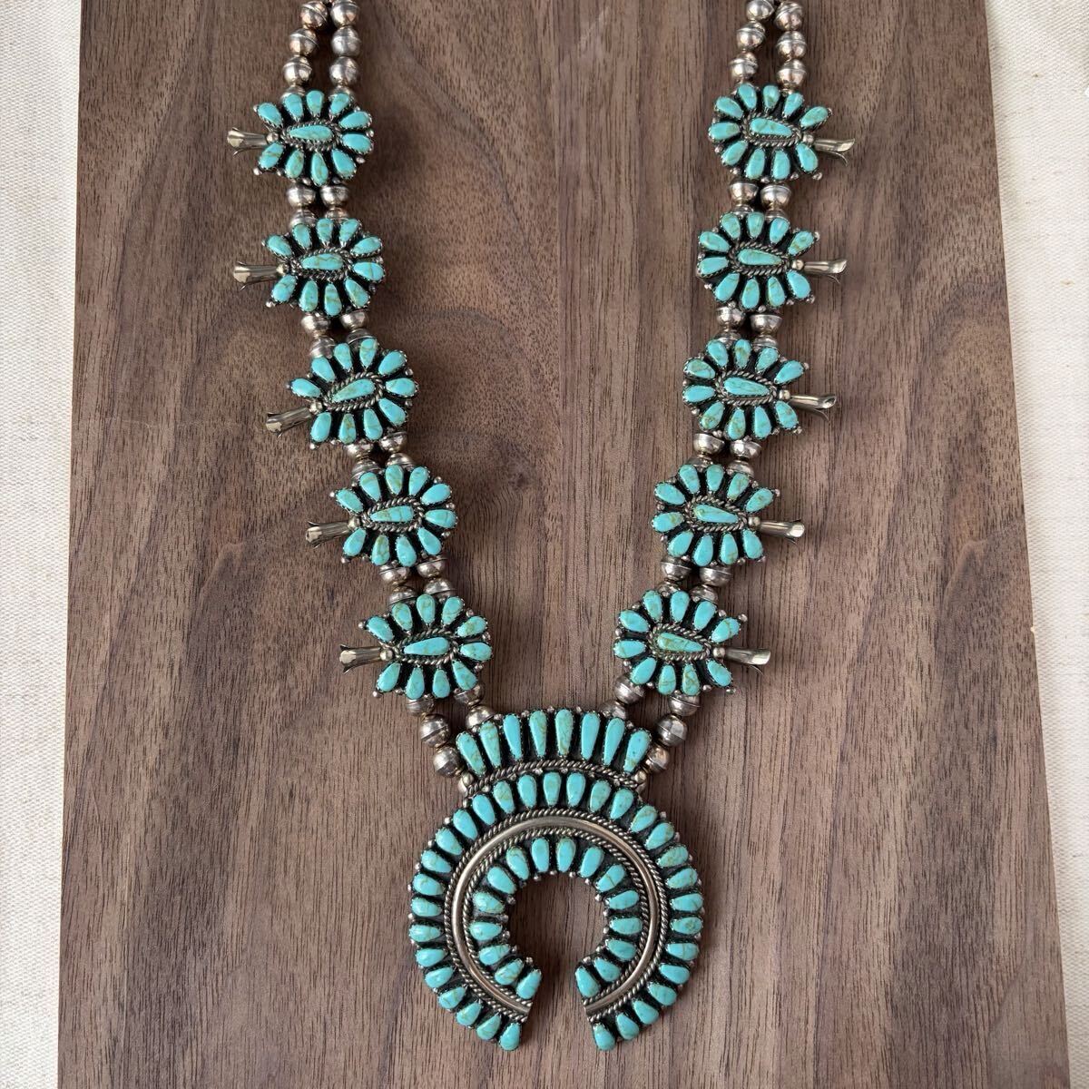 石はひとつひとつ細かく銀細工も大変丁寧で、おそらくナバホ族職人の作品ではないかと推測されます。サインなしの為、作者の詳細は不明です。