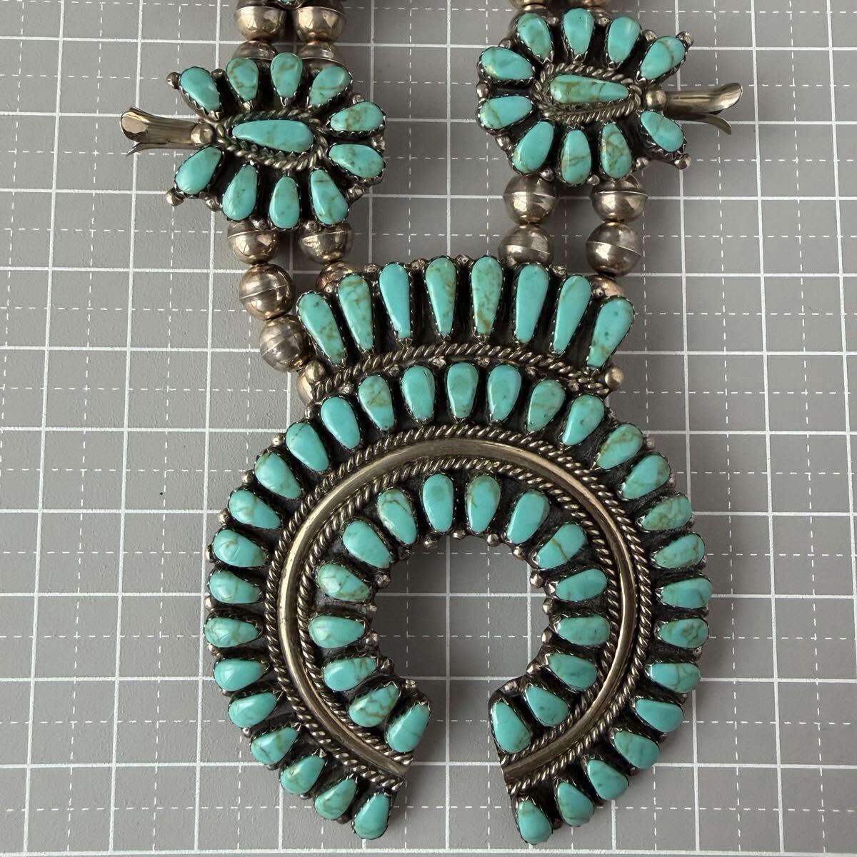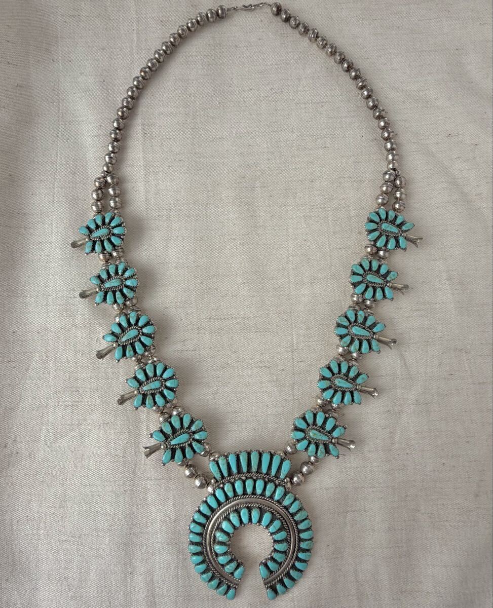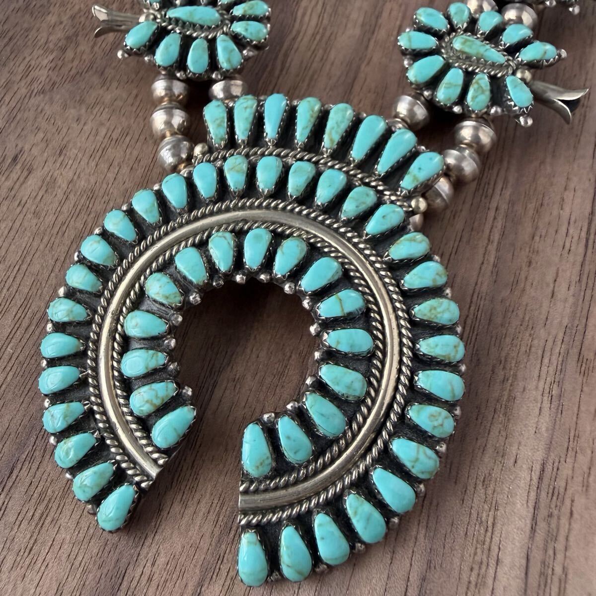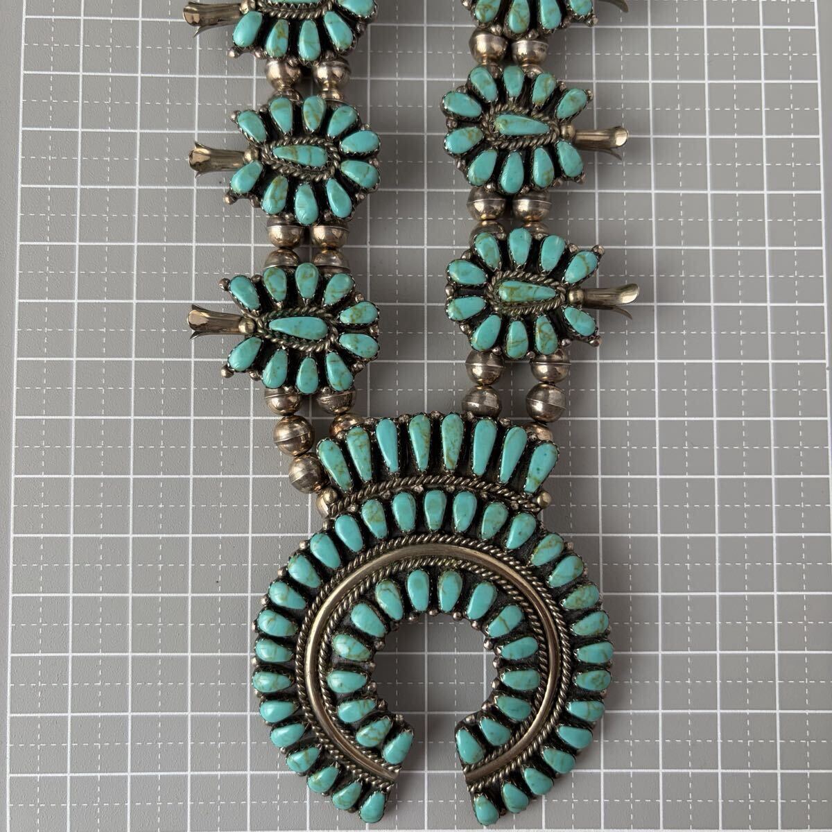 石はひとつひとつ細かく銀細工も大変丁寧で、おそらくナバホ族職人の作品ではないかと推測されます。サインなしの為、作者の詳細は不明です。