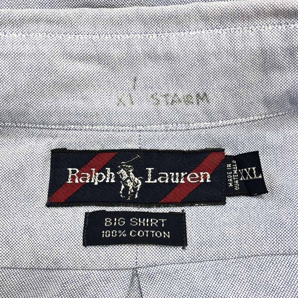 [商品管理番号] S0280 [ブランド] RALPH LAUREN/ラルフローレン [サイズ] XXL [実寸サイズ] 肩幅:約60cm 着丈:約85cm 身幅:約79cm 袖丈:約63cm [主な素材] 表地 : コットン [色] ライトブルー [仕様] ボタンダウン 大きいサイズ BIG SHIRT 55203 [状態] キズ:袖 | |||