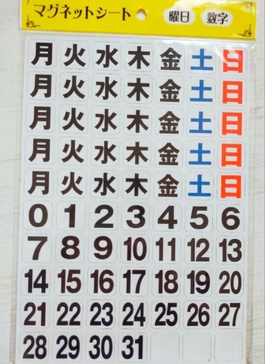 日付と曜日のマグネットシートになります。