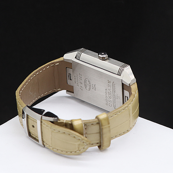 1円 稼働 良品 ジャガールクルト レベルソ 236.8.47. QZ スクアドラ シルバー文字盤 メンズ腕時計 0001430 10BKT KMR