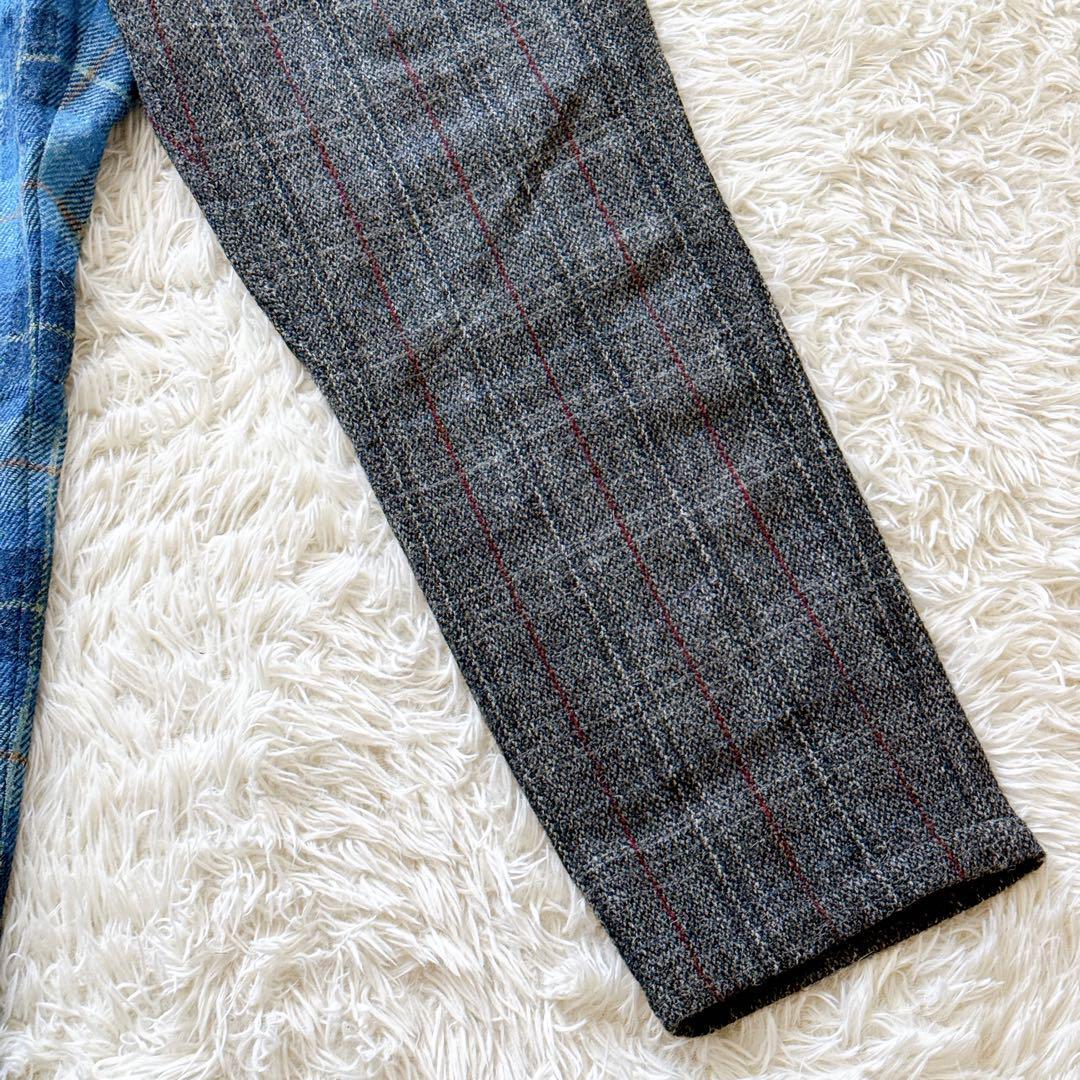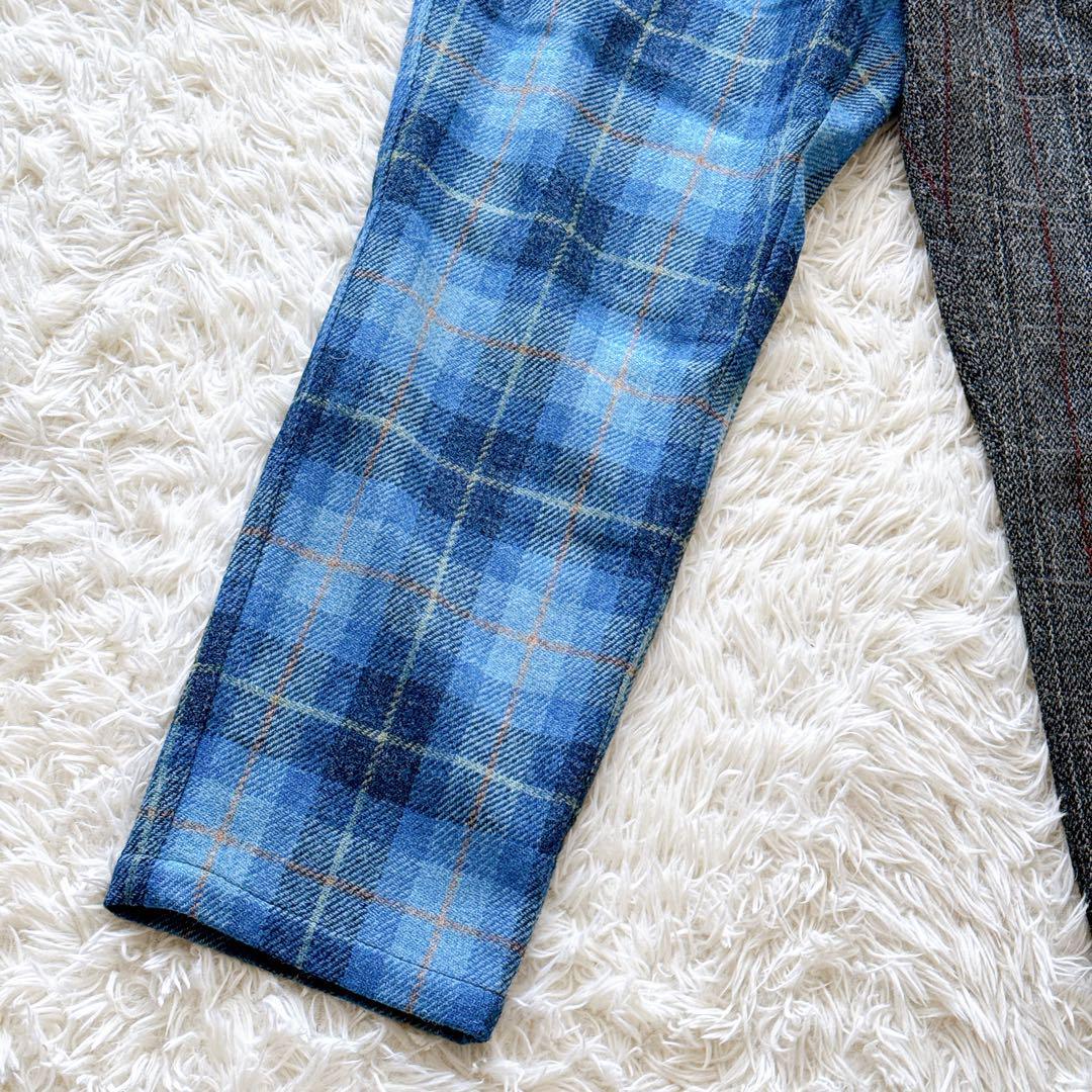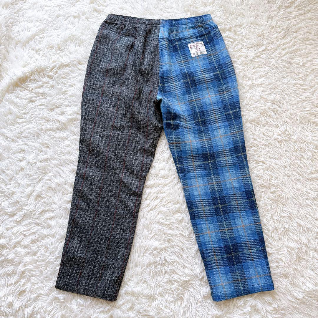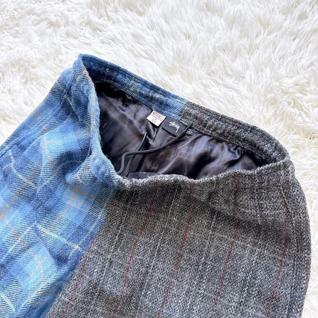 ステューシー STUSSY ハリスツイード HARRISTWEED コラボ ミックスアップ MixUp ツイードパンツ チェックパンツ スラックス イージーパンツ 英国製 ウールパンツ ウールツイード 裏地付き ヴィンテージ 限定モデル コレクションライン セットアップ対応 ブルー グレー メンズ XLサイズ ビッグサイズ 希少 廃盤 正規品 美品 秋冬