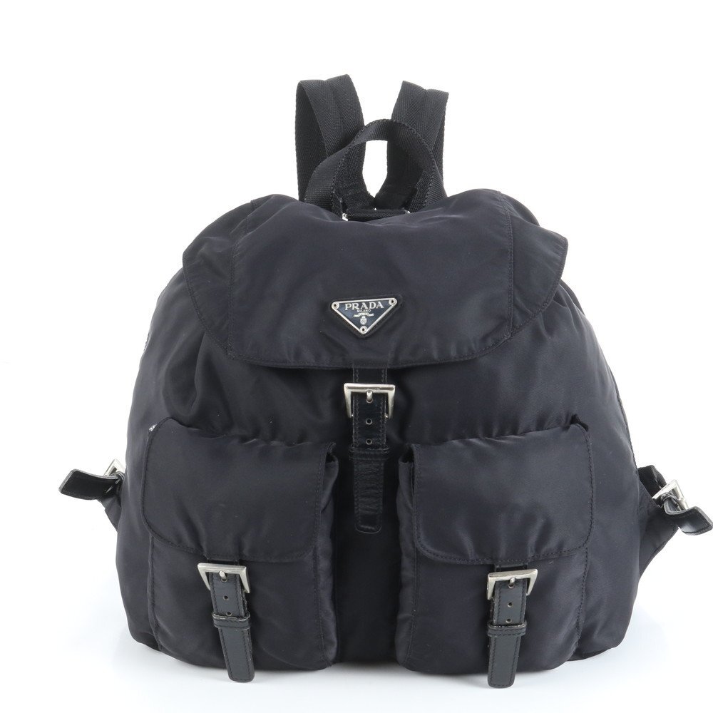1円■極美品■プラダ テスート ナイロン 三角ロゴ レザー リュックサック リュック バックパック ブラック 黒 バッグ レディース EEE CV2-7