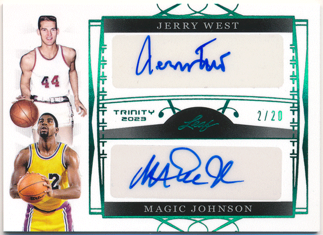 ☆ Magic Johnson / Jerry West 2023 Leaf Trinity Green Auto 20枚限定 直筆サイン オート ジェリー・ウェスト / マジック・ジョンソン