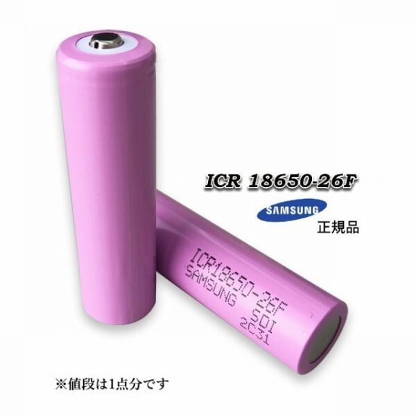 | 仕様 | 品番:ICR18650-26F(保護なし) サイズ:全長約65mm×直径約18mm 公称電圧:3.7V 公称容量:2600mAh 充電回数:1000~ |