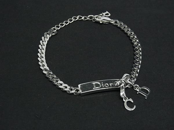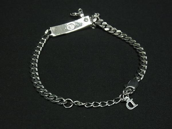 1円 ■美品■ ChristianDior クリスチャンディオール プレート リボン チェーン ブレスレット アクセサリー シルバー系 FR6076