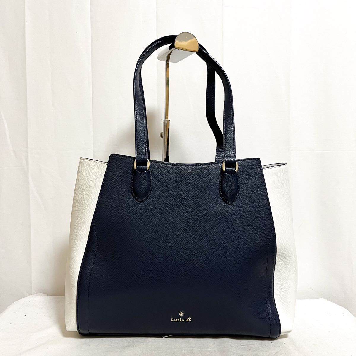 和863★ Luria 4℃ ルリア ヨンドシー トートバッグ 肩掛けバッグ ネイビー ホワイト レディース