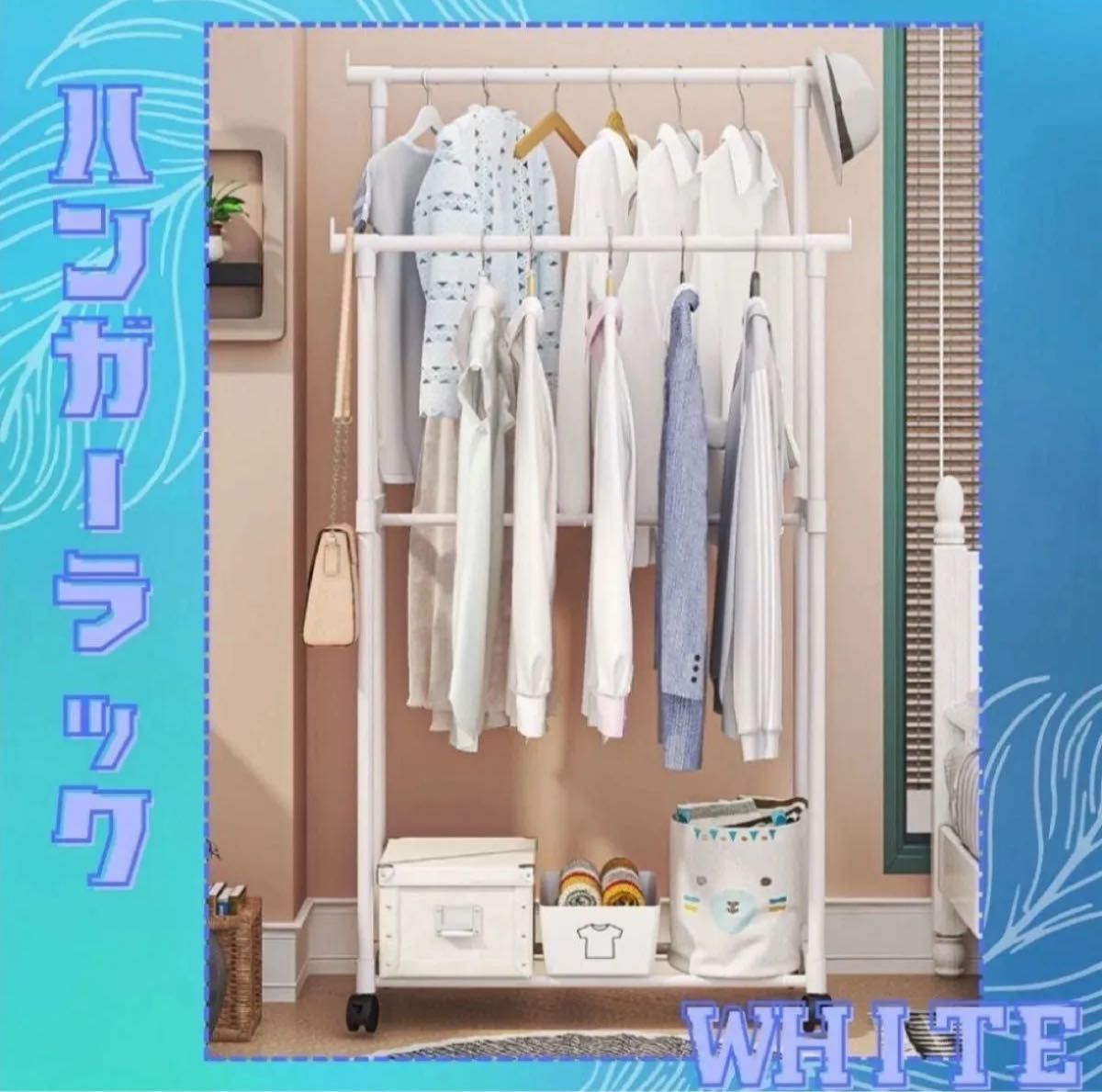 ハンガーラック ホワイト キャスター付き 2段 ダブルハンガー 衣装ラック 部屋干し 大容量 収納 クローゼット 白 オシャレ