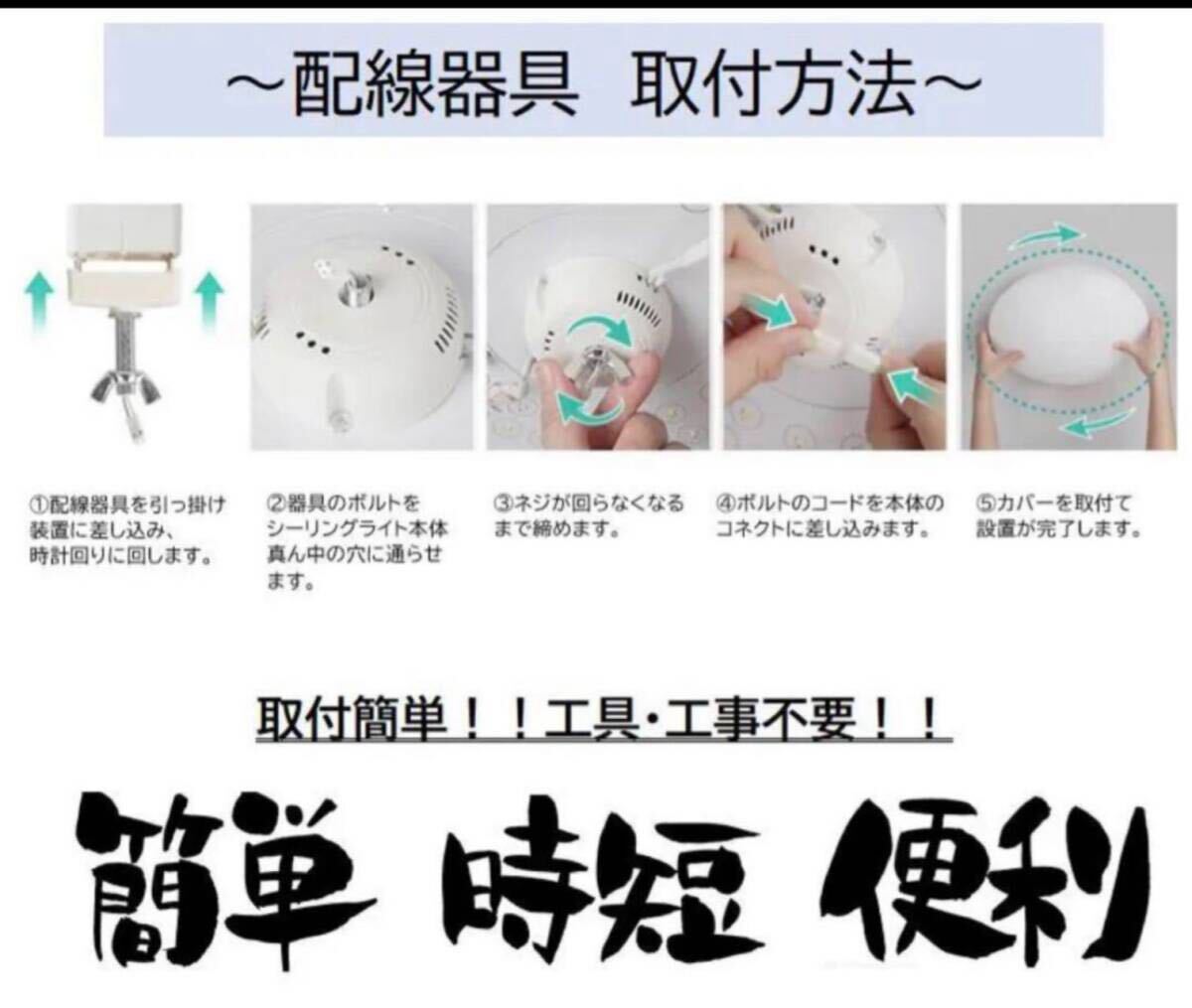 天井に対応の配線器具がある場合、電気工事や工具不要で簡単に取り付けできます。
