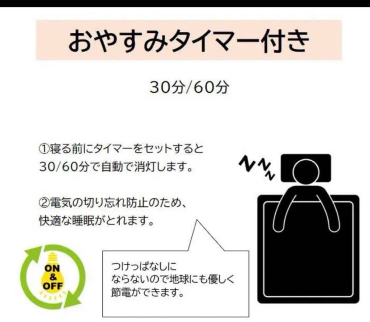 30分後、60分後に消灯するタイマー機能を搭載!