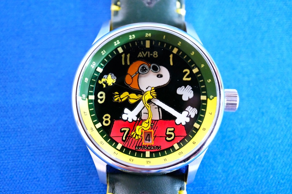 スヌーピー ピーナッツ75周年を記念した AVI-8のGMTつき自動巻き腕時計 新品同様・未使用動作品です。